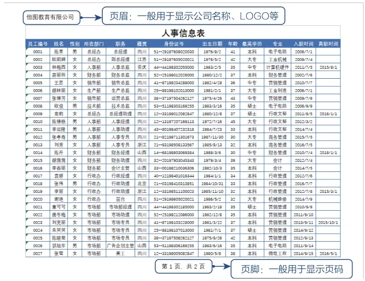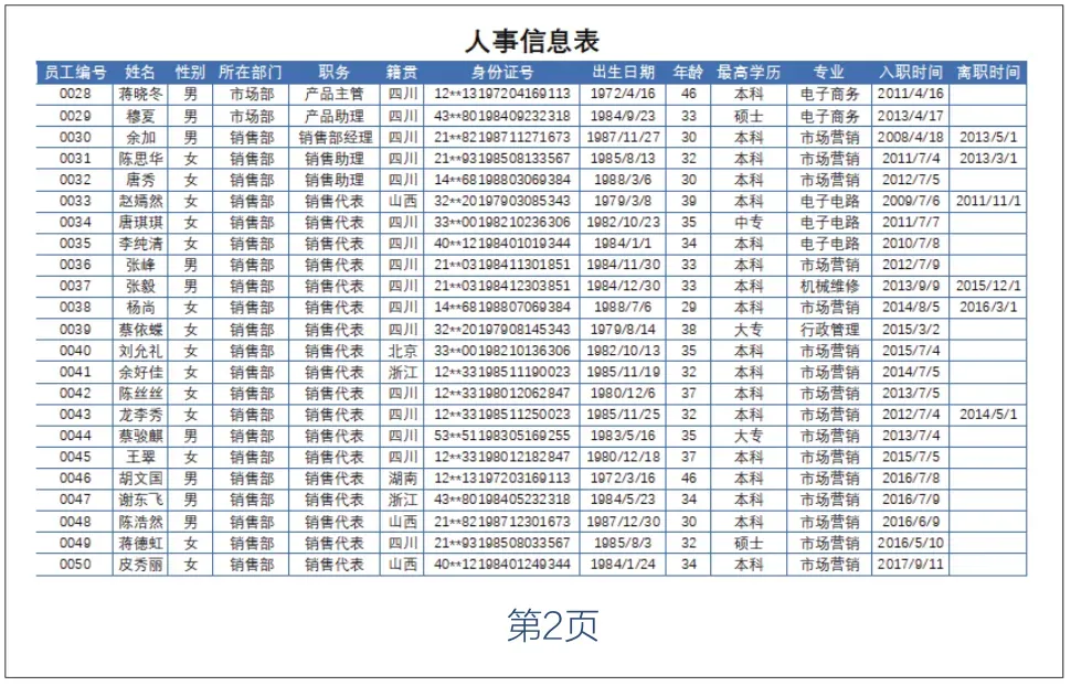 在 Excel 中,经常需要制作各种类型的人事表格,因此,根据制表的目的和需求将这些表格分为数据源表和结果汇总表两大类。