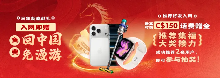 每位老用户最多可推荐 6 位新用户最高可得 C$150 话费赠金