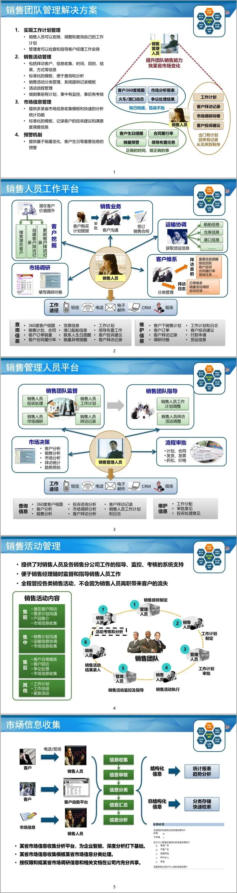- 销售团队管理:通过工作计划管理、客户拜访日志、市场信息收集、重要事件预警等功能,实现对销售人员活动的全过程监控与指导,提升团队销售能力与工作效率。