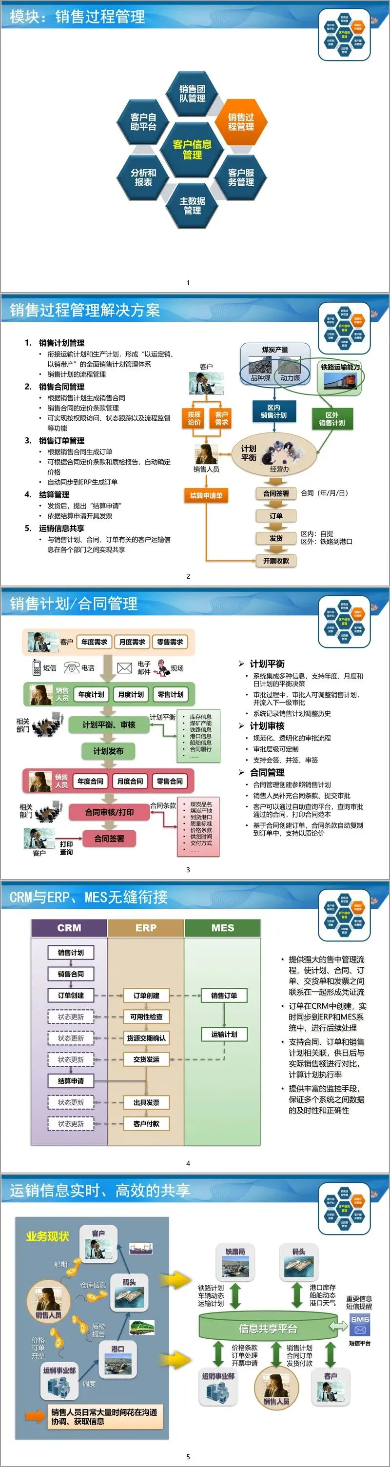 - 销售过程管理:涵盖从销售计划、合同、订单到结算的全流程管理。强调与运输、生产计划的衔接(以运定销、以销带产),实现计划、合同、订单、发货、发票之间的凭证流联动,并与ERP、MES系统深度集成。