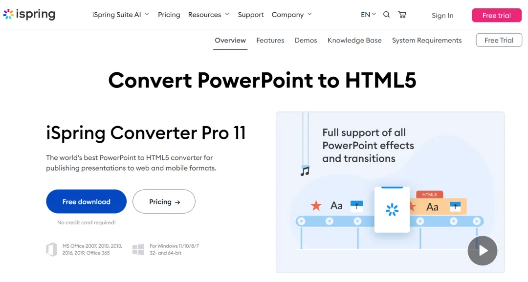 - iSpring对PPT中的动画效果、转换效果、字体样式支持非常好,转出来的视频和PPT放映几乎是一致的,有非常好的转换效果。