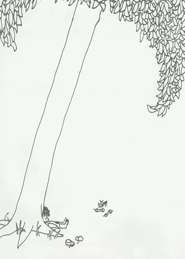 累了的时候,就在树荫里睡觉。男孩爱这棵树,非常非常爱她。大树很快乐。