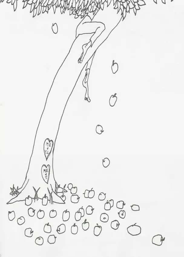 “真抱歉,”大树说,“我没有钱。我只有树叶和苹果。孩子,拿我的苹果到城里去卖,这样,你就会有钱了,就会快乐了。”