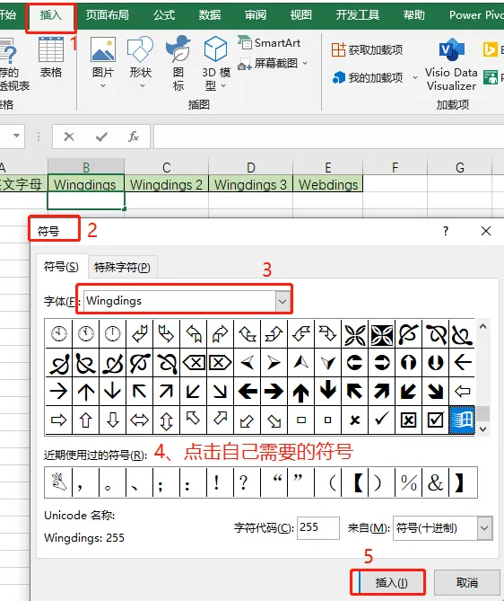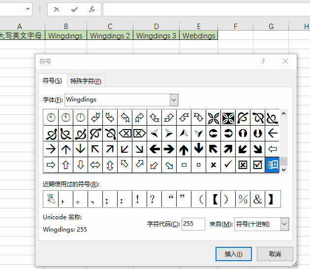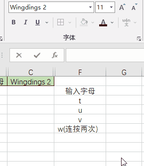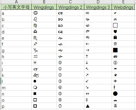 复制到其他的空白列,然后将原空白列的字体改为 Windings、Windings 2、Windings 3 或 Webdings~