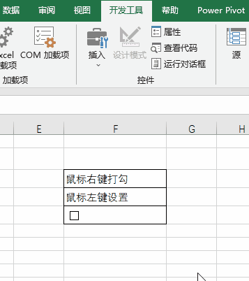 我们可以利用控件来实现,选择【开发工具】——【插入】——【复选框】,在任意位置插入,选中复选框,用鼠标右键实现自动打勾,用鼠标左键可以进行设置,如设置【控件格式】等。