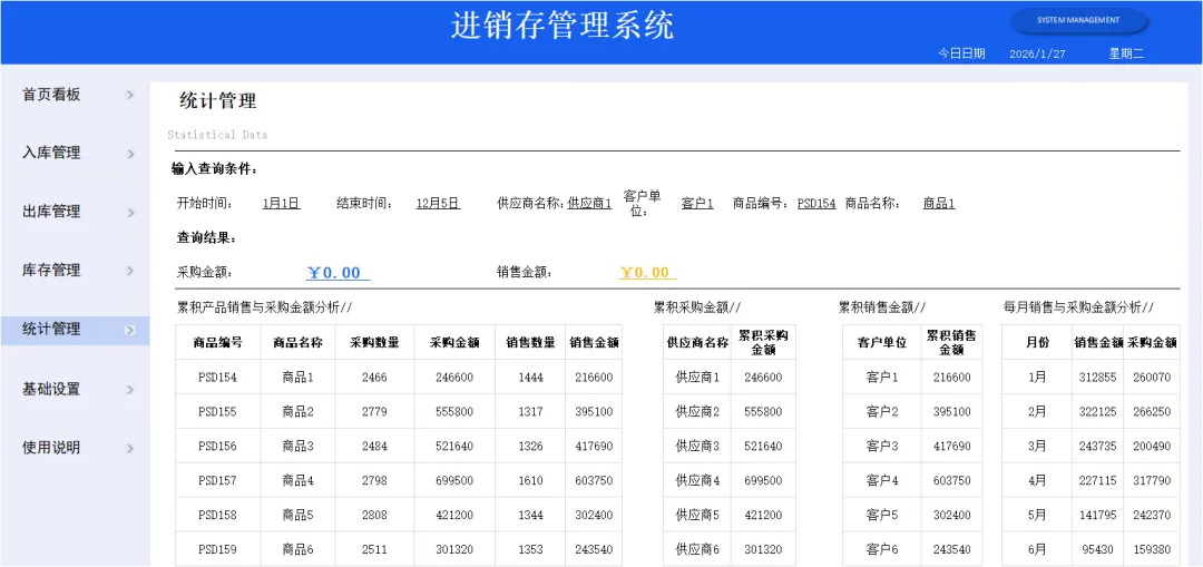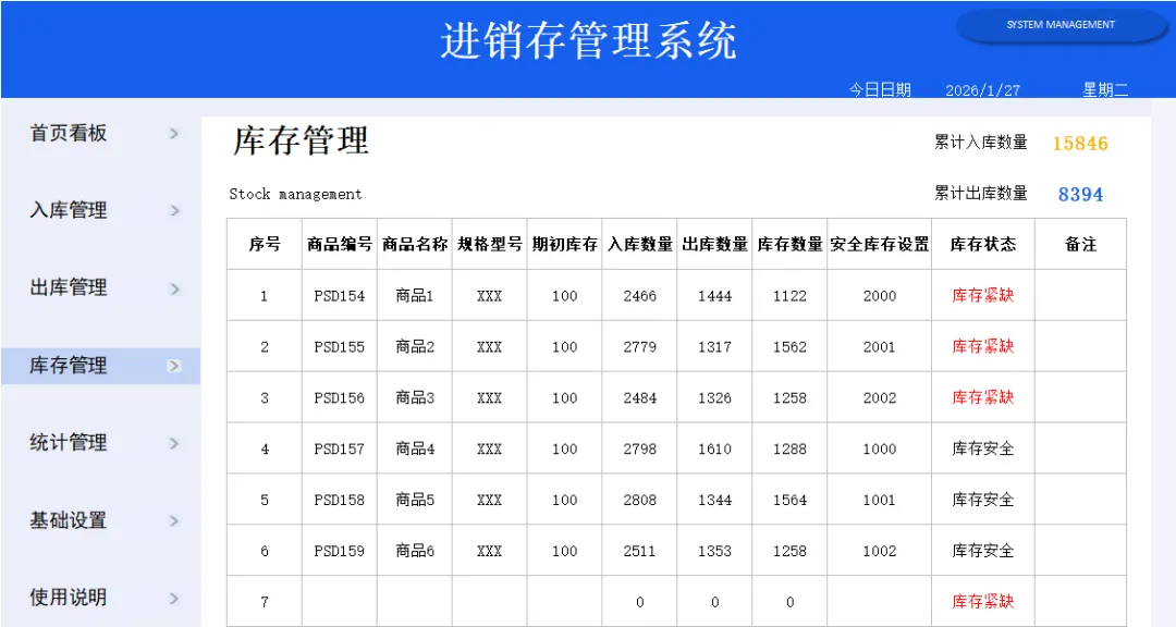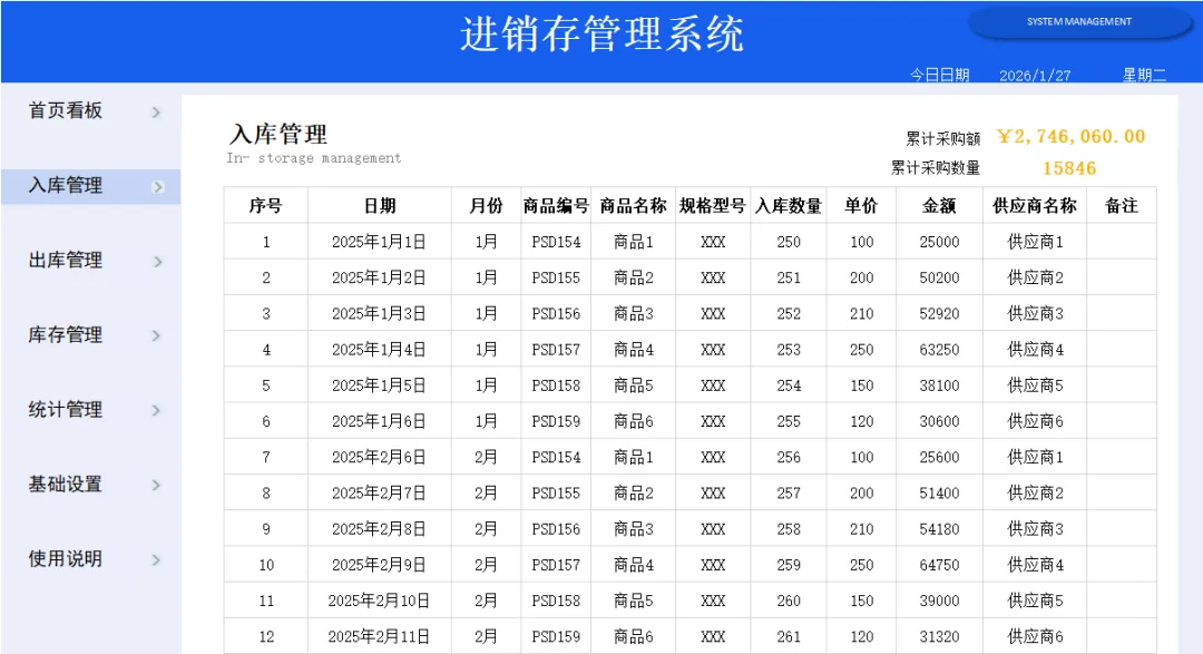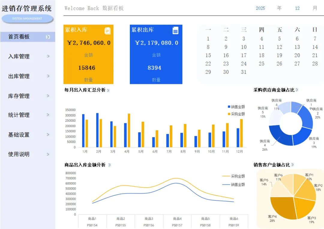 为以后不再没日没夜加班加点,搞来这套Excel全自动进销存系统,里面带有公式,录入数据就能生成报表,还带库存预警,真的太实用了!