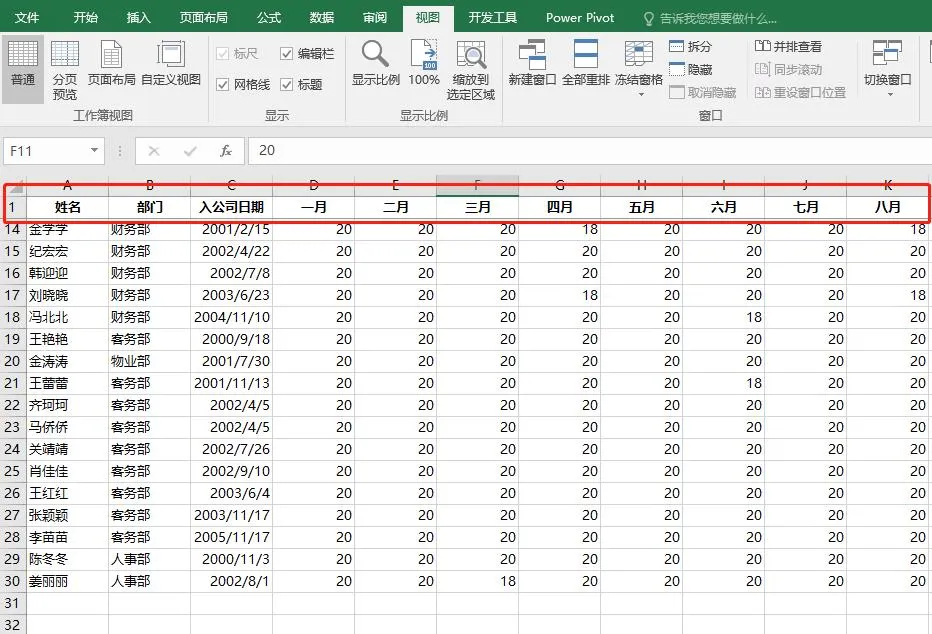 技巧7:冻结窗格