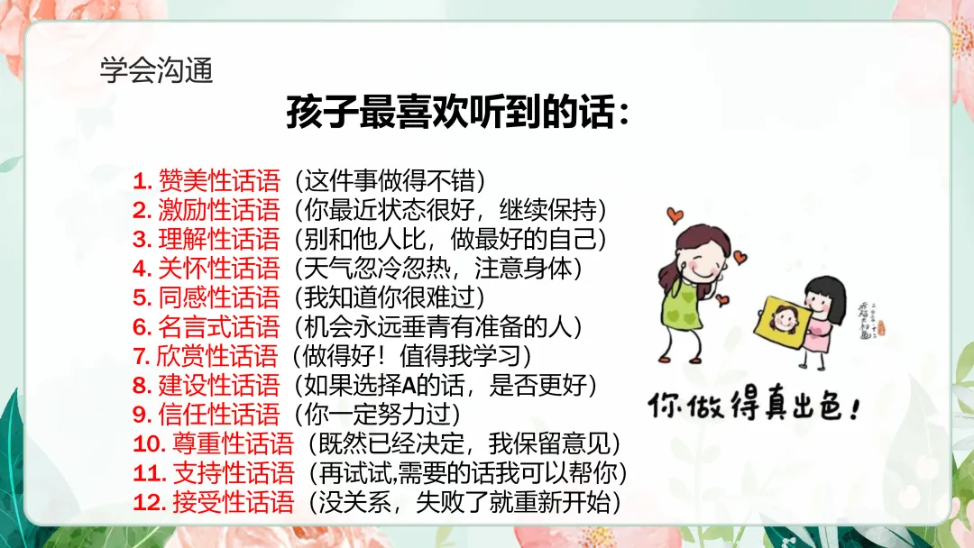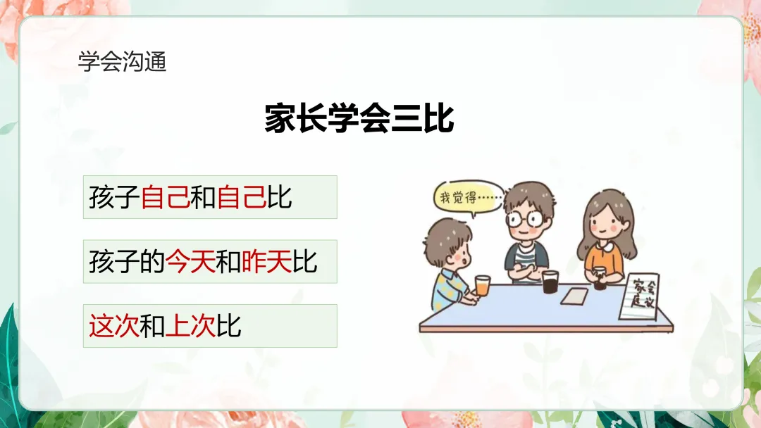 家长学会三比:孩子自己和自己比;孩子的今天和昨天比;这次和上次比。
