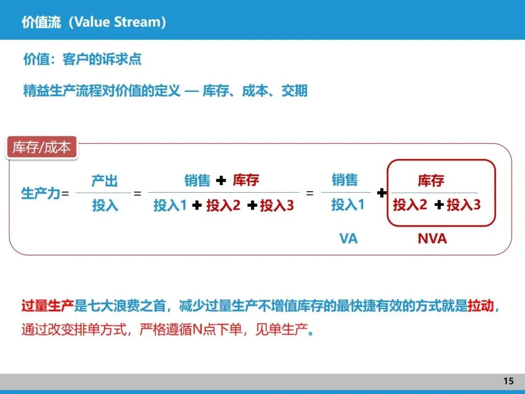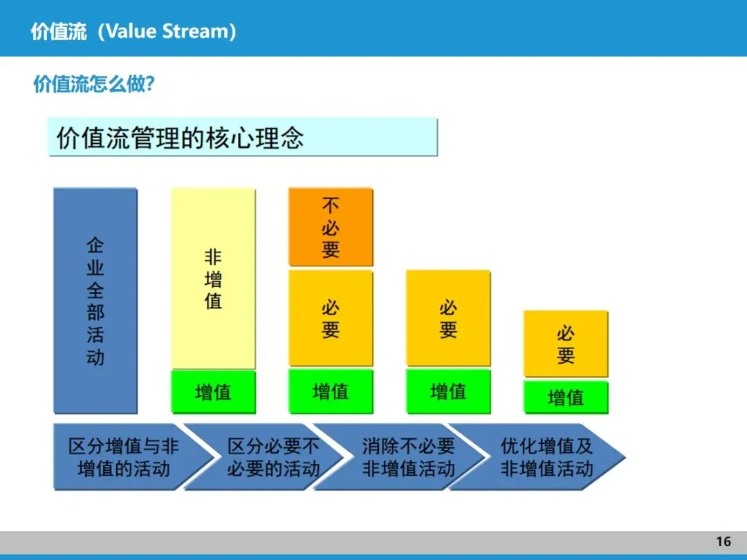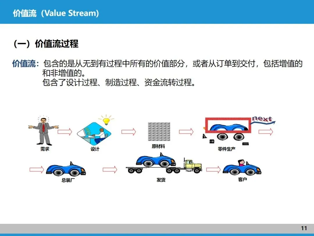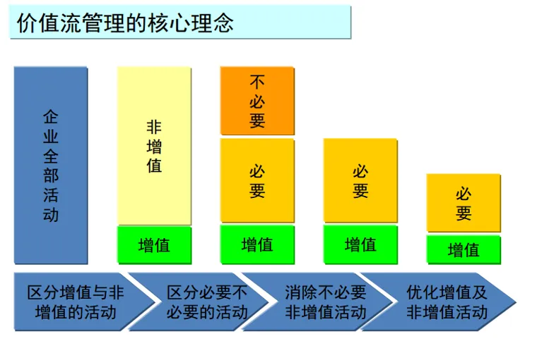 价值流涵盖了从订单到交付的全流程,既包括能为客户创造价值的核心活动,也包含不增值的辅助环节,设计、制造、资金流转等都在其中。它的核心目标是揪出流程中的浪费,这和精益生产的核心理念不谋而合,是精益实践的核心载体。