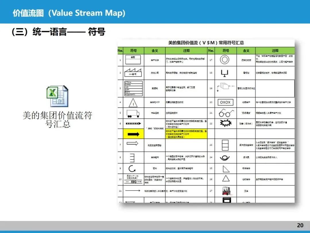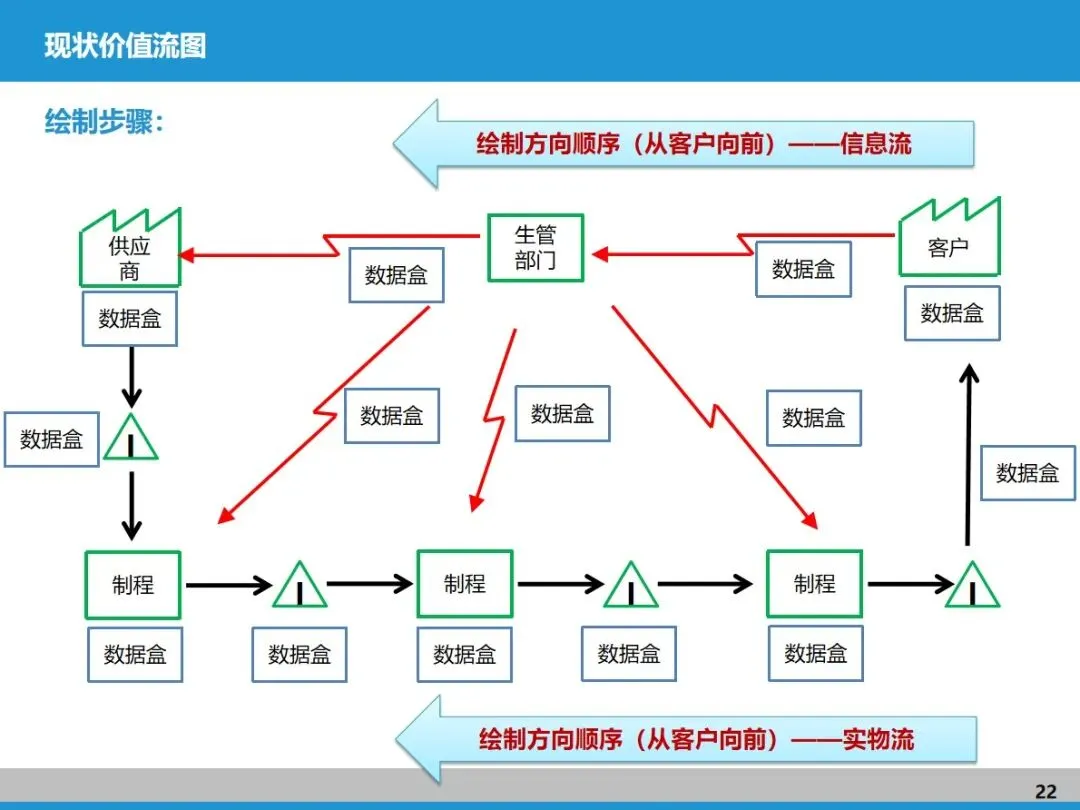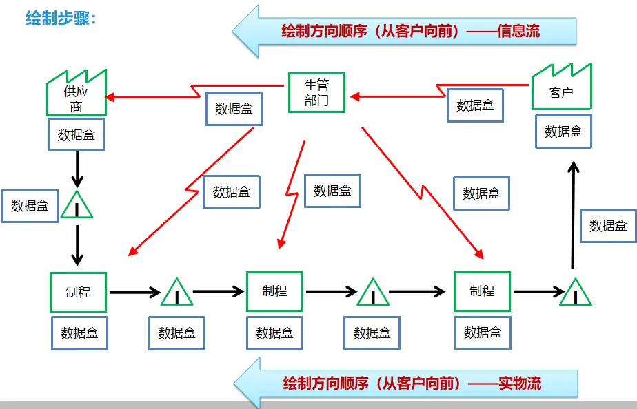 价值流图就像生产流程的 “透视镜”,用统一的符号和图表把物流、信息流都清晰呈现出来,是找浪费、促沟通的实用工具。画现状价值流图,能全面排查流程断点、库存积压等问题;而理想价值流图则以 “连续流” 为目标,规划拉动机制和库存设计,本质上就是精益工厂的规划蓝图。