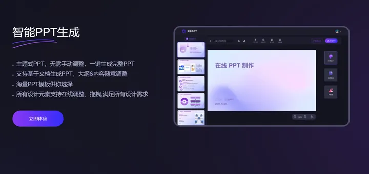 ChatPPT是国内AI PPT领域的热门工具,以对话式生成与全链路服务为核心优势,适合需要精准把控课件内容的ppt课件制作。我在制作学术答辩课件、重难点解析课件时,经常用到这款工具,它支持通过自然语言对话实时调整课件内容与设计,能精准还原教案逻辑,避免AI生成内容偏离教学重点。其基础功能免费且无次数限制,高级功能付费性价比高,适配不同预算的教学需求,尤其适合对内容严谨性要求较高的场景。