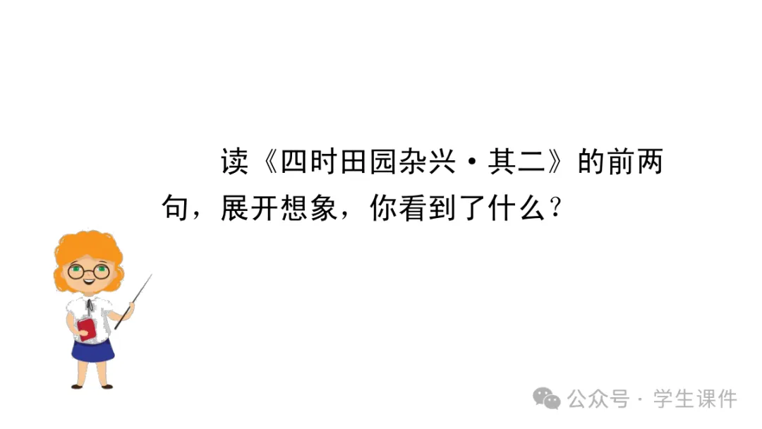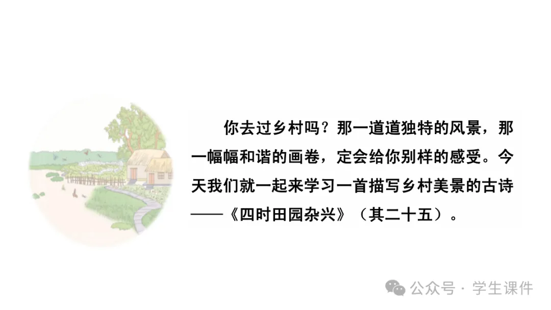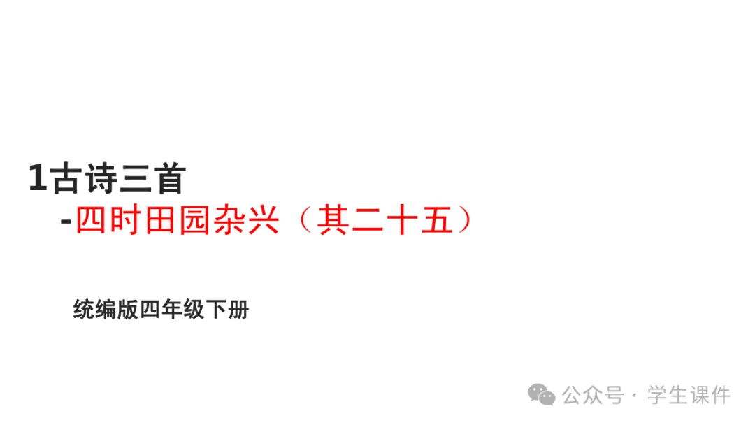 当前位置:首页>PPT>PPT课件 课文1.古诗三首《四时田园杂兴(其二十五)》 (四年级语文下册)