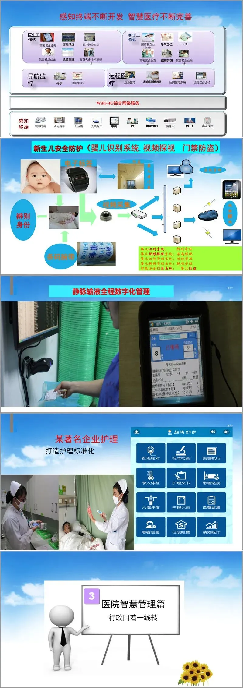 住院服务方面,医院通过WiFi与4G网络融合,结合条码腕带、RFID、扫描枪等感知终端,构建了全程数字化管理平台。新生儿安全防护系统通过婴儿识别、视频探视等功能保障医疗安全;静脉输液管理实现精准监控;某著名企业护理平台的引入则推动了护理操作的标准化。这些技术不仅提升了诊疗效率,更降低了医疗风险。