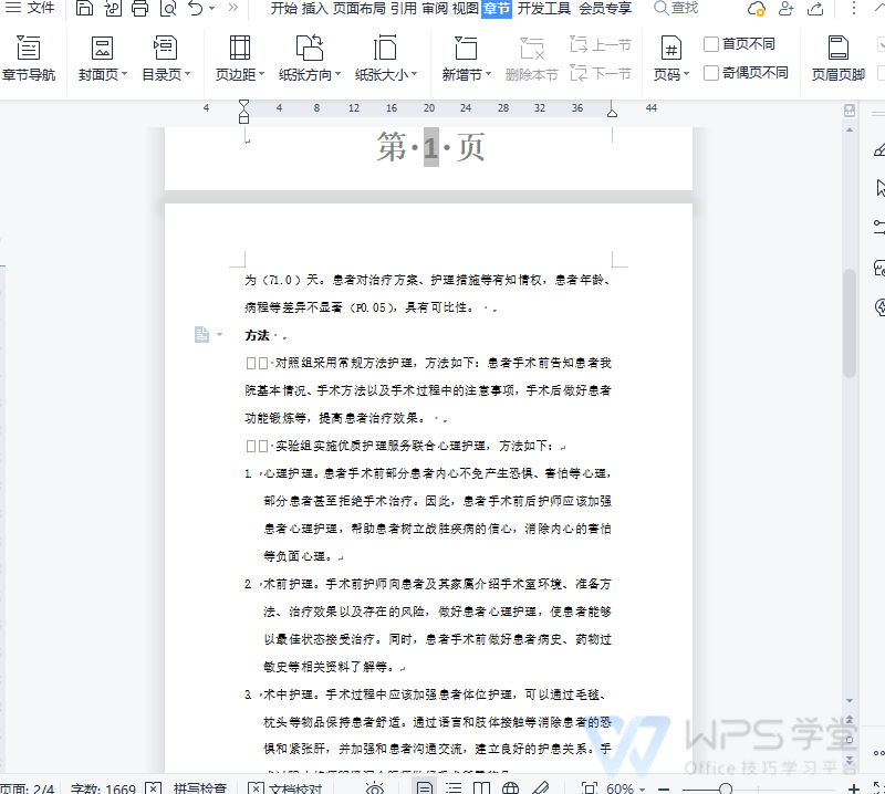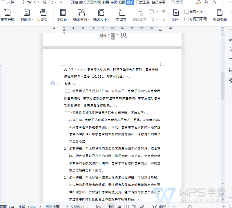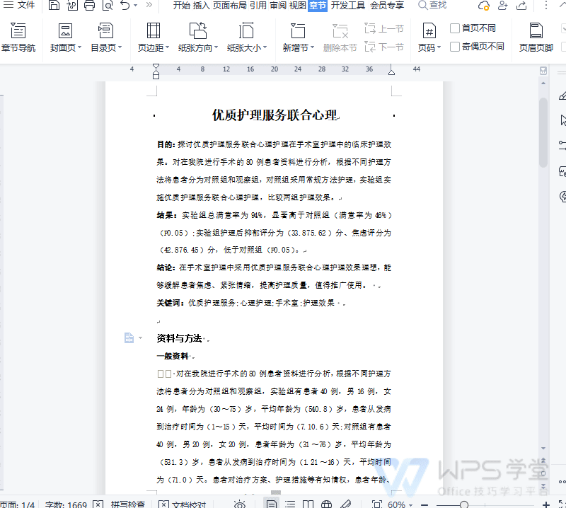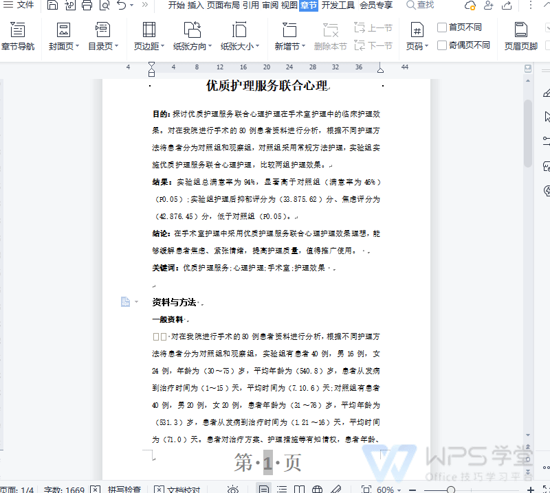 如我们想在《资料与方法》前插入分节符,《资料与方法》将为下一页。
