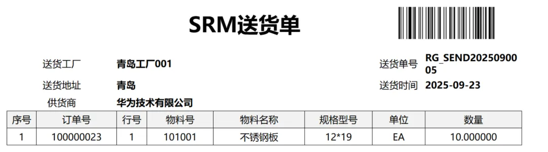 送货协同: 供应商在线打印条码/送货单,扫码入库,提高入库效率。