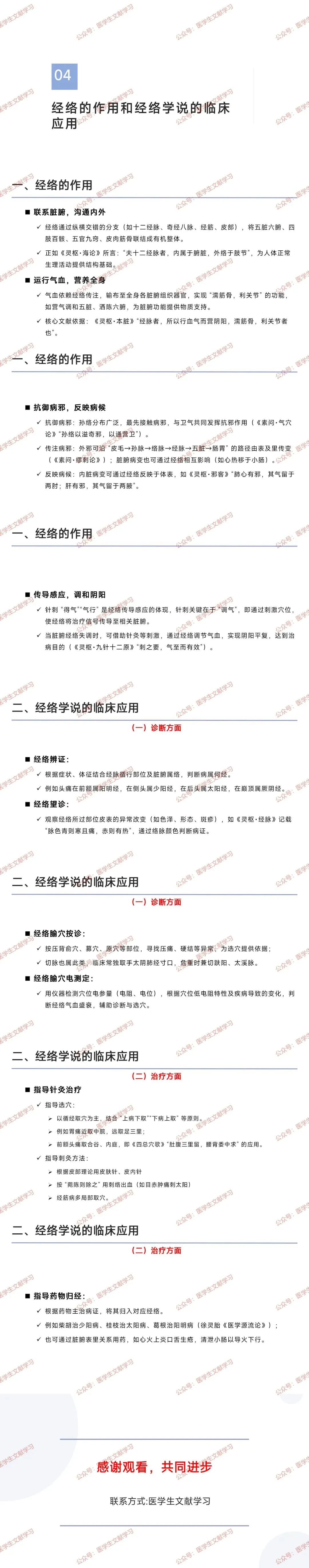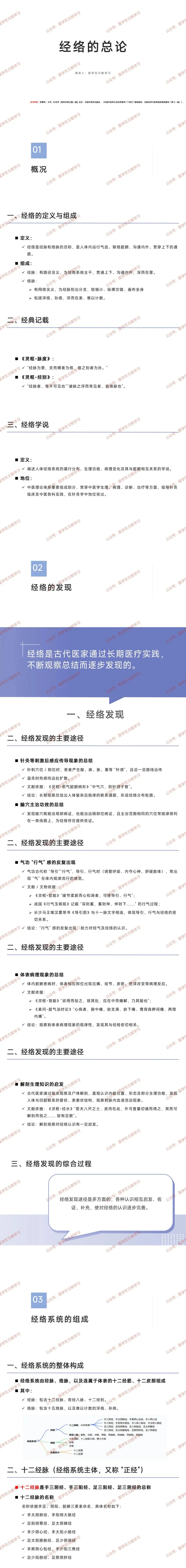 - 经络学说:阐述经络循行、功能、病理及与脏腑关系,是中医理论核心,指导针灸及各科实践。