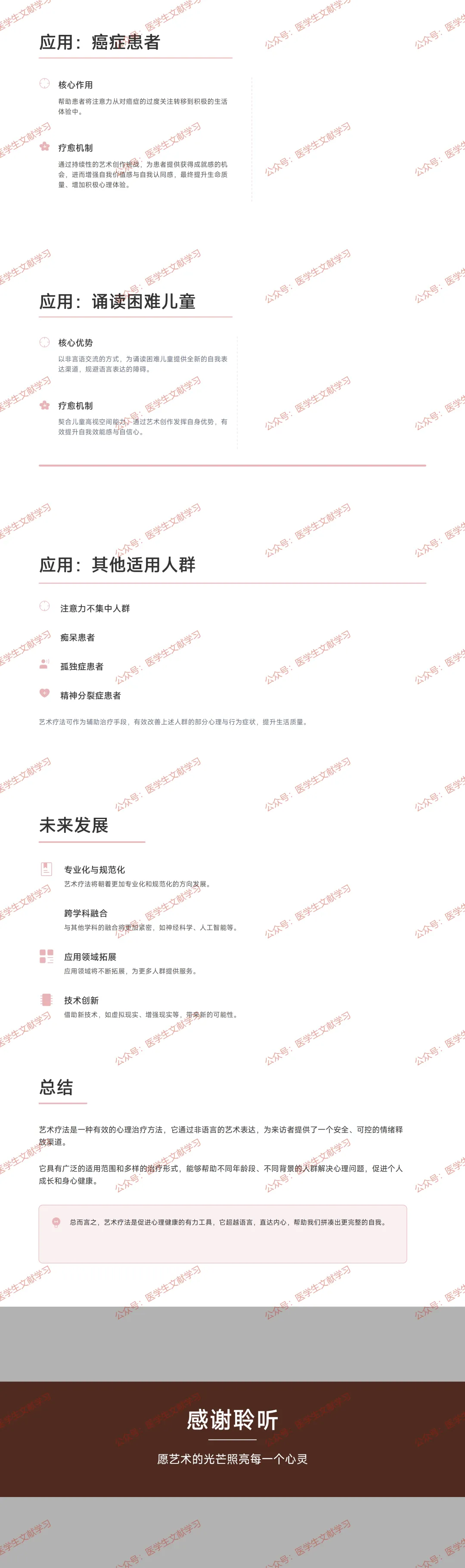 - 癌症患者:转移对疾病的关注,通过创作获得成就感,提升自我价值与生命质量。