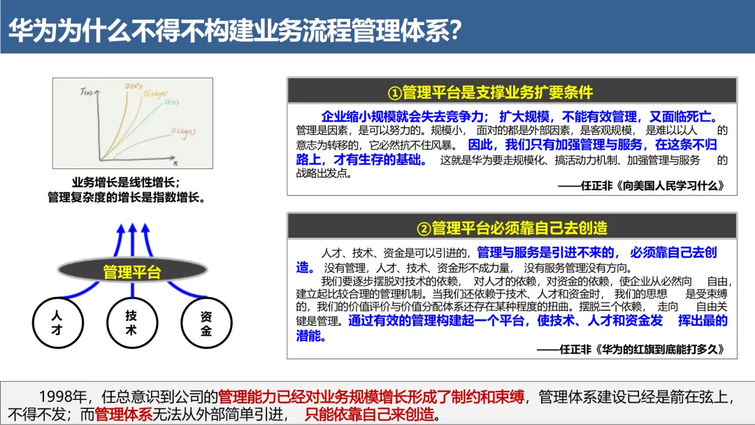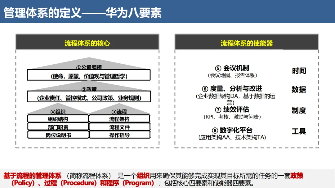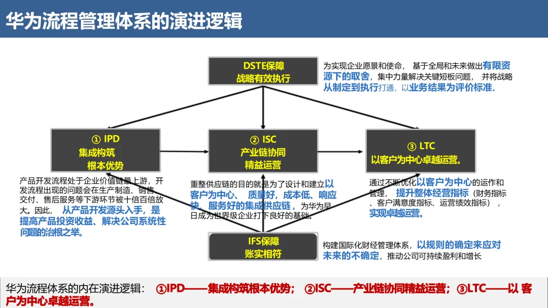 核心在于体系化建设: 华为构建了覆盖全业务链的流程架构(如LTC、IPD、ITR),确保从客户需求到产品交付、服务支撑的端到端贯通。这些流程并非孤立存在,而是相互咬合、标准统一,形成强大的协同网络。其精髓在于将最佳实践固化于流程中,实现“一次做对,次次做对”。