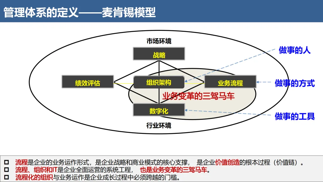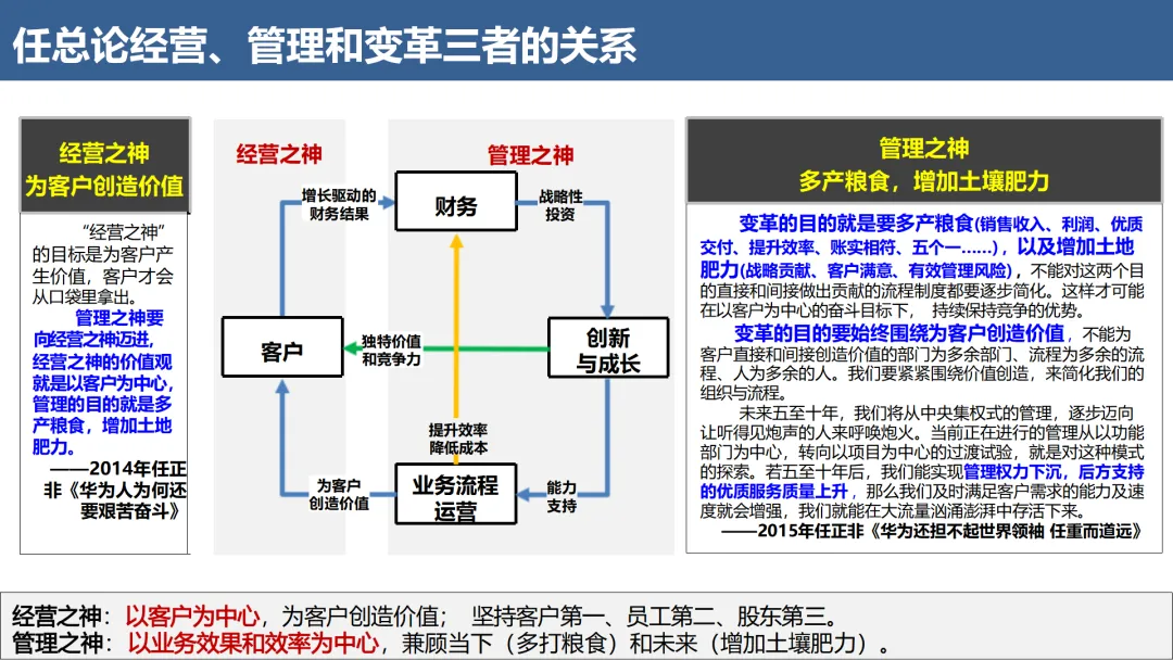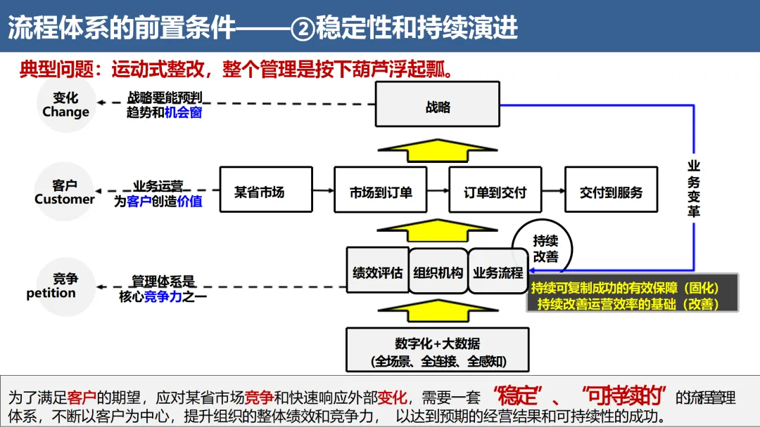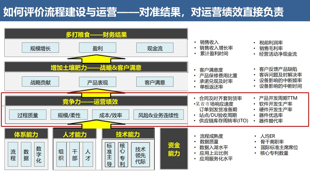 生命在于持续运营: 流程的生命力在于运营。华为设有专门的流程变革与管理组织(如变革委员会),负责流程的优化、推行与审计。通过严格的遵从性管理、定期的审视优化,以及强大的IT系统支撑,确保流程不流于形式,始终贴合业务实际,并能随战略变化而敏捷调整。