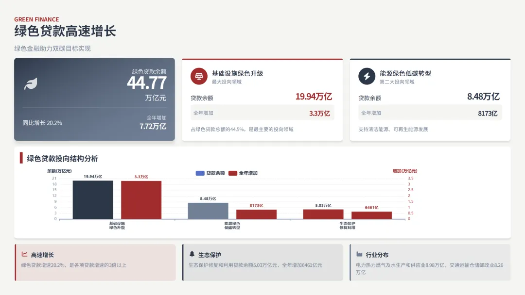 2025年四季度末,本外币绿色贷款2余额44.77万亿元,同比增长20.2%,全年增加7.72万亿元。