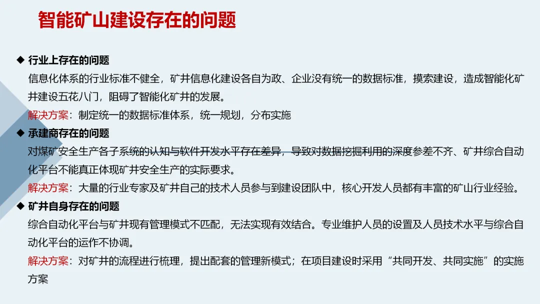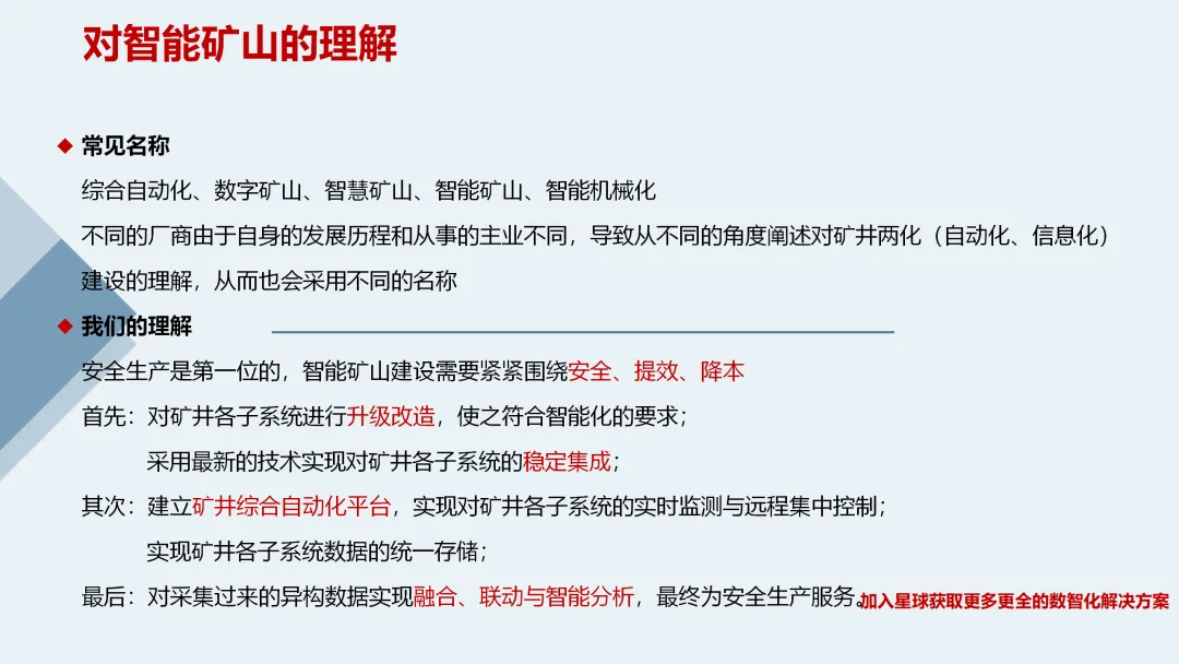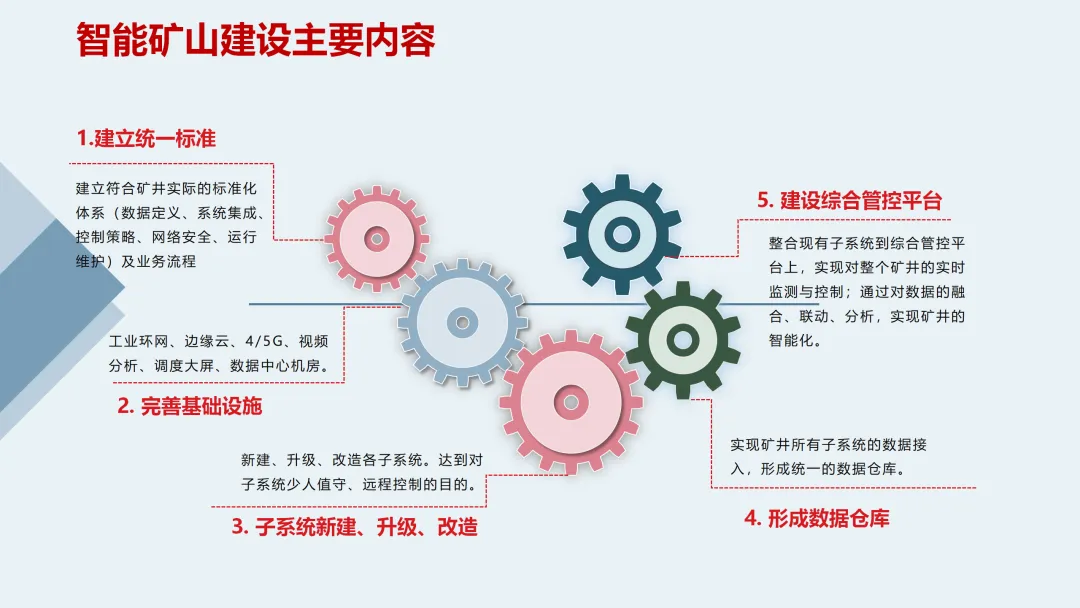 本方案紧扣安全、提效、降本核心目标,以5G技术为核心支撑,构建了 “基础设施-子系统升级-综合管控-数据智能” 的全栈式智能化体系,旨在解决矿山信息化标准不统一、子系统孤立、安全风险高等痛点,推动矿山从传统自动化向智能协同转型。