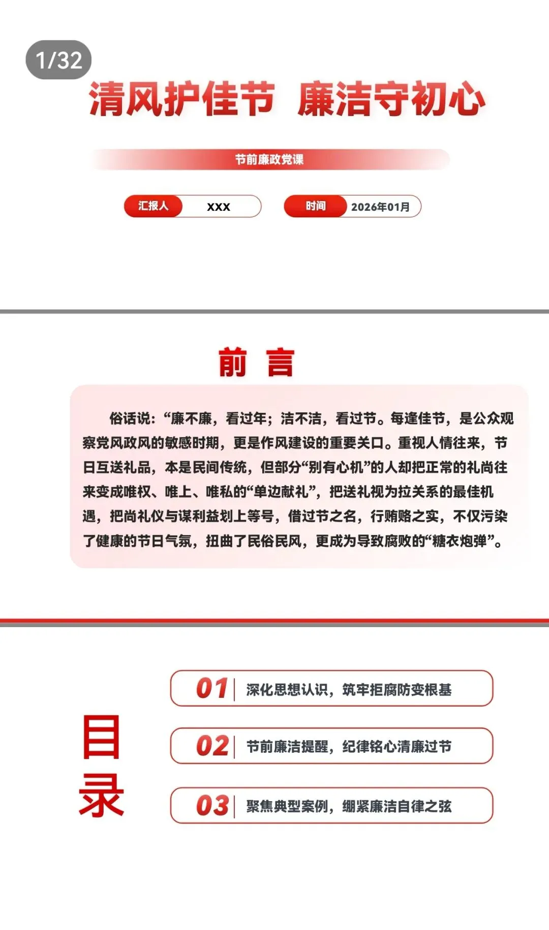 >PPT:2026年元旦、春节前党员干部廉政党课:清风护佳节,廉洁守初心