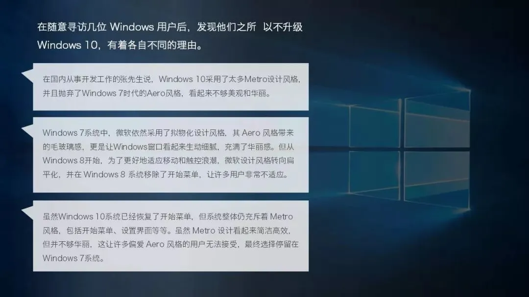 这是一张文字内容超多的PPT,相信看这篇文章的所有读者都有遇到过。先来说说这张PPT的问题。①图丑。不知道为啥,我看到这个经典的 WINDOWS 图标桌面,我都觉得很丑,可能是它过时的原因。②文字排版上,重点不清晰。如果咋一看,还以为是一整段文字内容呢,其实,稍经分析,会发现,其实不是。③英文字体不统一,差评。而且呢,我在之前的一篇文章写给大家看的中文排版指南!中说过,中西文排版时,要注意空格。①为了配合Win 10的扁平风格,换成Win 10的壁纸。这是一张在纯色背景上做出的内容页,跟智能蔬菜大棚有关,设计太简陋了:①选择一张跟蔬菜大棚相关的背景图,以使整个页面看起来很丰满。②将重点内容突出。如果对文字内容分析的话,可以知道,整段文字是不能提炼关键信息的。所以,重点内容只有最下面的3个特点。当我第一眼看到这张PPT时,我想起了我大学时代的老师们,嗯呢,对,这就是属于他们的Style ,“美”极了。似乎这种土气的PPT模板永远都不会消失。另外,套用土模板也就罢了,在字体,背景,色彩等各方面,也都做得不是很美观。总之一个字,丑。②采用色块来展示文字,选择白色主要是比较容易搭配。如果在制作过程中遇到什么问题或者有什么建议,大家可以留言/私信。菜鸟菌看到了,会及时回复。如果觉得文章内容不错,希望大家可以点赞/分享/推荐/收藏,