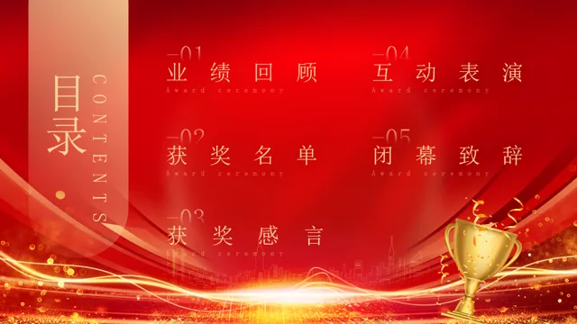 >PPT模板:企业年会2026“开门红”颁奖典礼员工表彰大会(27页,红色精美)