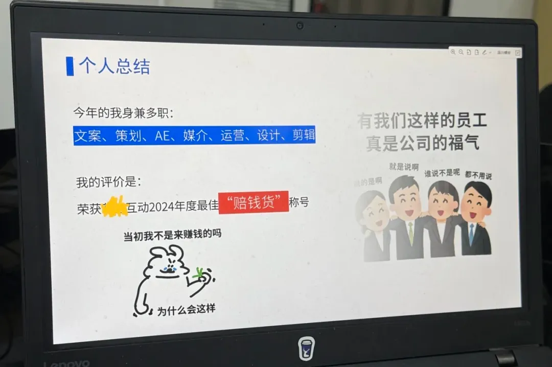 会议室投影仪的光束下,大家用精心编排的数据和图表,讲述着一年来的“牛马人生”。领导点头的瞬间,他们知道,这场年度酷刑结束了。