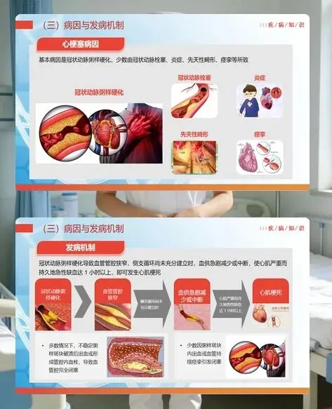 急性心梗的核心病因是冠状动脉粥样硬化,常因斑块破裂形成血栓导致血管闭塞。患者典型表现为剧烈持久的胸骨后疼痛,可并发心律失常、心力衰竭等严重并发症。本次病例中的患者,有 8 年高血压病史且未规范管理,入院时胸痛评分 7 分,心肌损伤标志物显著升高,经 PCI 治疗植入支架后病情逐步稳定。