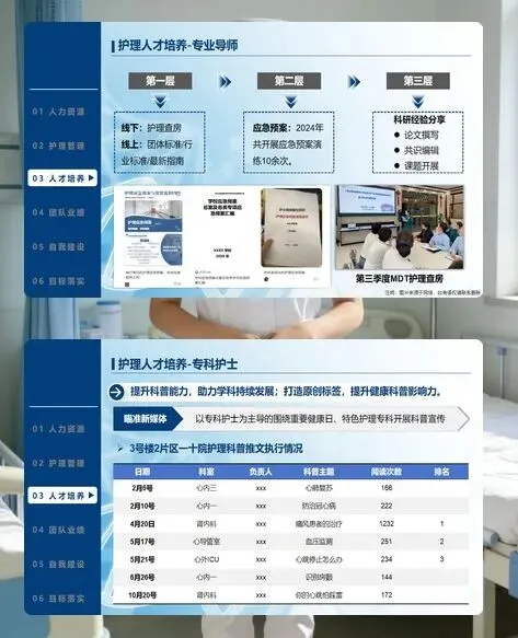 人才培养实现多层次全覆盖。针对护士长开展管理能力提升分享,通过多维度测评锤炼领导力;为专业导师搭建学习平台,开展 10 余次应急预案演练;引导专科护士打造科普品牌,多篇推文阅读量名列前茅;借助疑难病例讨论,提升带组护士风险干预能力,全年培养优秀规培护士、服务明星等多名骨干人才。