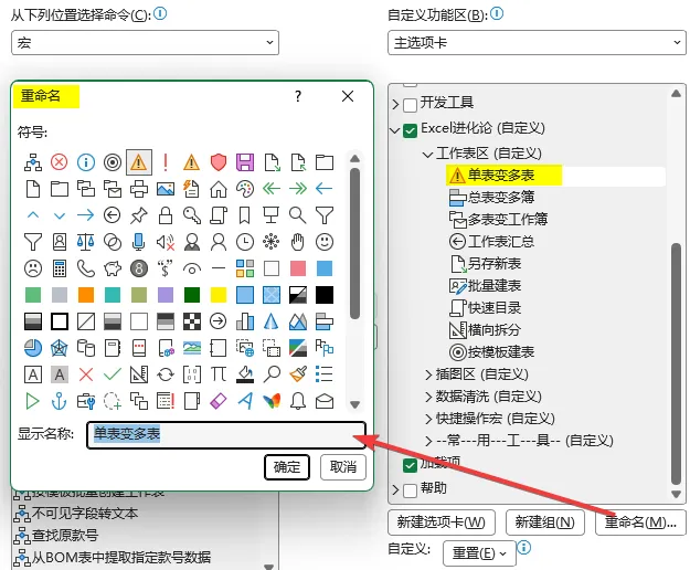 进阶玩法: 点击“重命名”,你可以为这个宏选择一个形象的图标(比如一个闪电或小机器人)。