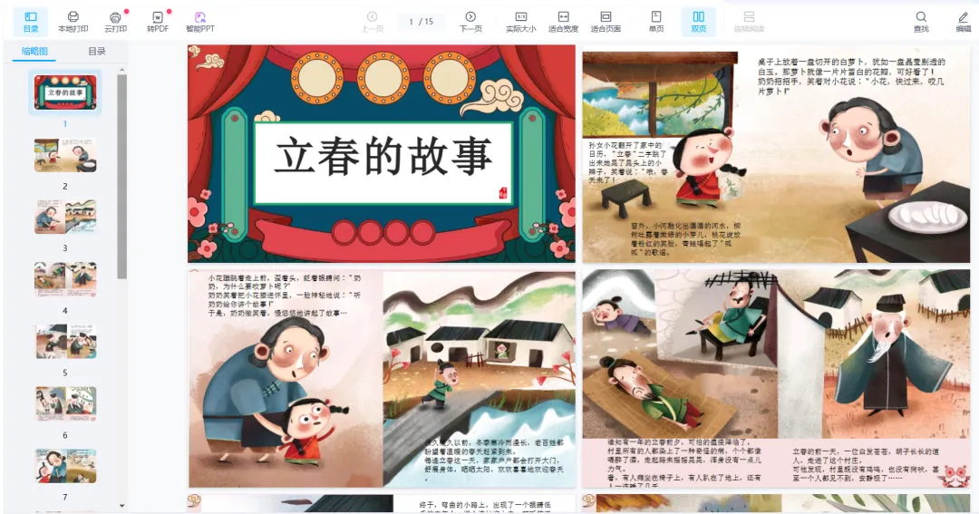 该绘本以立春节气为背景,生动讲述了立春的由来、习俗(如“咬春”“打春牛”等),让孩子在故事中了解中国传统节气文化,感受古人对自然规律的观察与敬畏,增强对传统文化的认同感和自豪感。