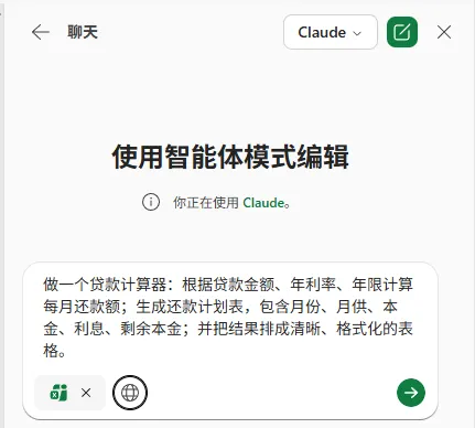 这种写法的关键是:先说最终要交付的东西,再补充字段、结构、呈现方式。Agent 模式更容易按目标推进。