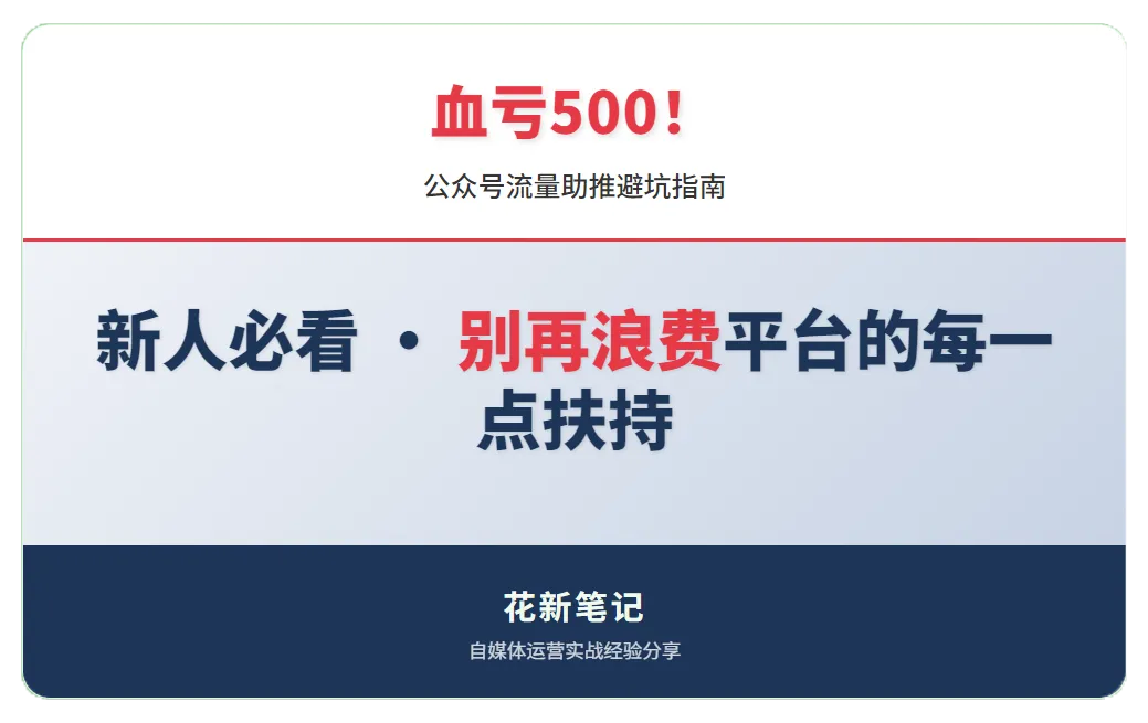 大家好,我是花新学长。上一篇文章分享了如何用工具提升效率,快速起号。今天我想分享一些更重要的东西,如何用数据分析避免踩坑,增加平台的免费推荐,进入更大的流量池我刚开始以为流量助推是捷径,结果花了500流量助推,只换来了13个阅读,真是血亏啊。但是作为程序员我会吸取这个教训,总结过去一周的数据,进行问题复盘,并避免未来再出现这个问题我把那两篇用了流量助推的文章数据拿出来。用excel表进行对比,发现了其中的问题。文章在发布1小时内没有获得足够互动,系统可能已将其标记为低质量内容。此时使用助推纯粹是浪费,效果必然很差流量助推不是雪中送炭,而是锦上添花。它只能放大已经验证好的内容,但无法挽救一篇已经失败了的内容根据我指标好的文章做对比,发现后续都能获得更多系统推荐,尤其是搜一搜和推荐的渠道似乎系统更在乎读者是否读完,而并不在乎阅读的人数到底有多少我这里有些文章,因为有些朋友主动帮我点赞以及评论,能清晰感觉到互动总数很高,但互动密度很低。而该文章的推荐量却很低,代表着互动密度比互动总数更重要读者停留时间非常重要,文中可以添加一些稍作思考的代码片段或图片,能够有效增加读者在页面的停留时间文章中的关键词非常重要,需要围绕一个核心关键词增加2~3个长尾词,这样文章在搜一搜里更容易被搜索到对于我们程序员来说,公众号的运营可以将它当成一个数据产品来运营,不是写文章,而是通过数据反馈并持续迭代的工程,别再凭感觉做事了,让数据告诉我们答案你在公众号运营中踩过最大的坑是什么?是不是和我一样,流量助推纯纯打水漂了!下一篇预告:《我规划了一个未来半年可能赚到钱的公众号产品矩阵》。我将从流量思维,切换到商业思维。