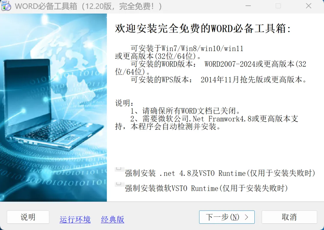 已测试通过的WORD版本: Word 2007/2010/2013/2016/2019/2021/2024/365 32位/64位