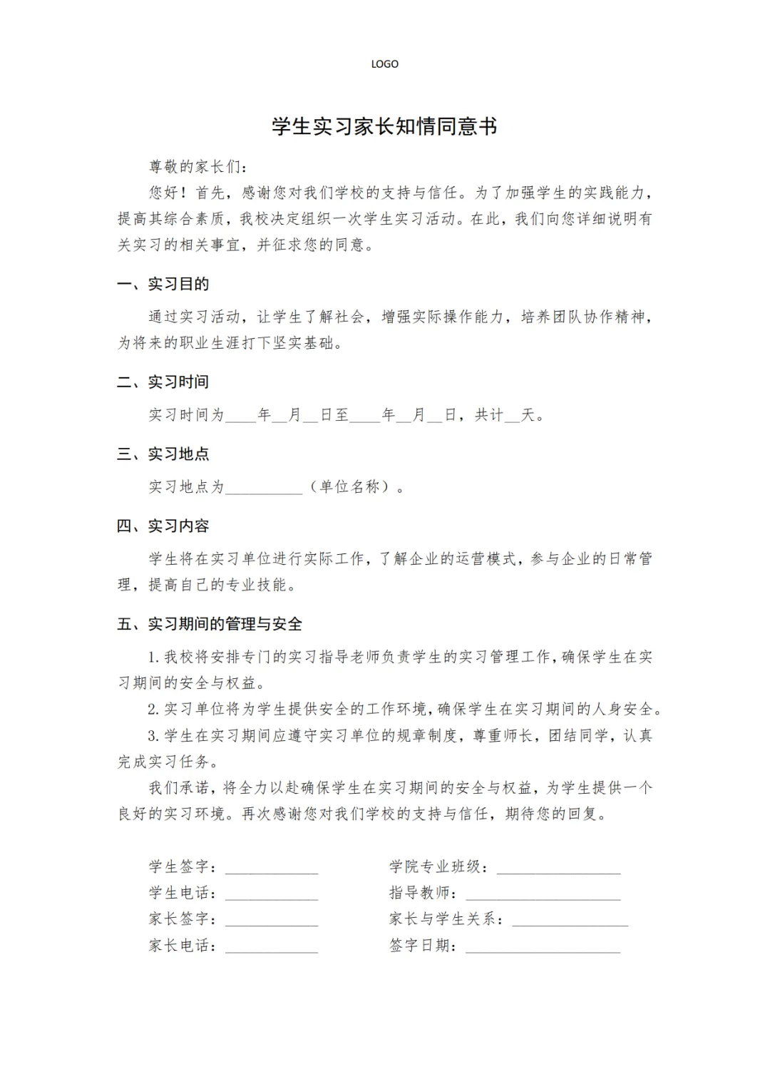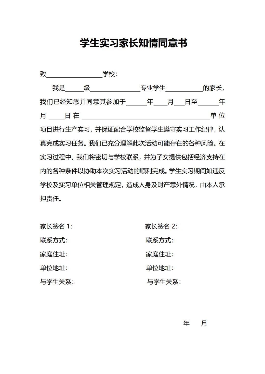 2款学生实习家长知情同意书模板,WORD文档电子版,可免费下载打印