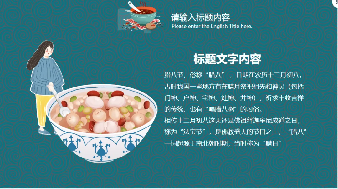 本文分享的是腊八节通用 PPT,适配民俗讲解 / 主题分享 / 节日课件