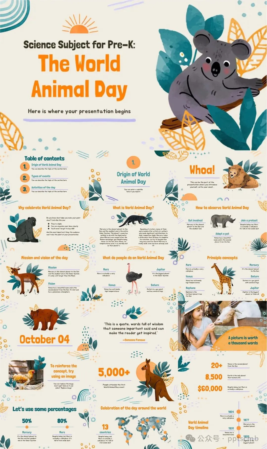 Hi~小伙伴们好,本期小编给大家推荐一期小动物卡通PPT模板,希望大家能喜欢