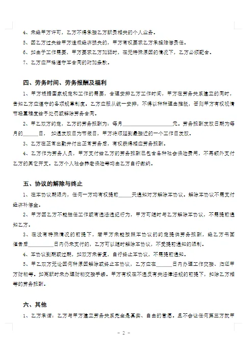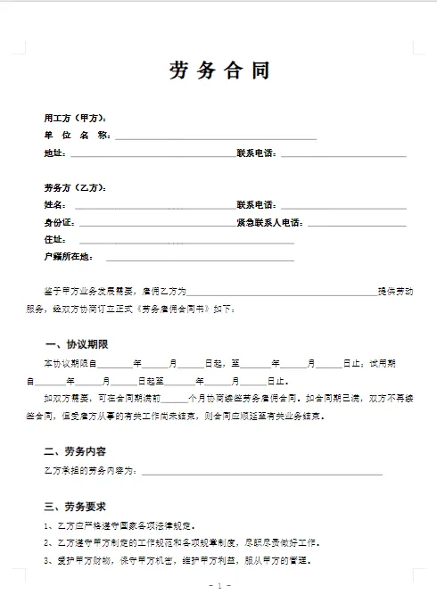 劳务雇佣通用模板