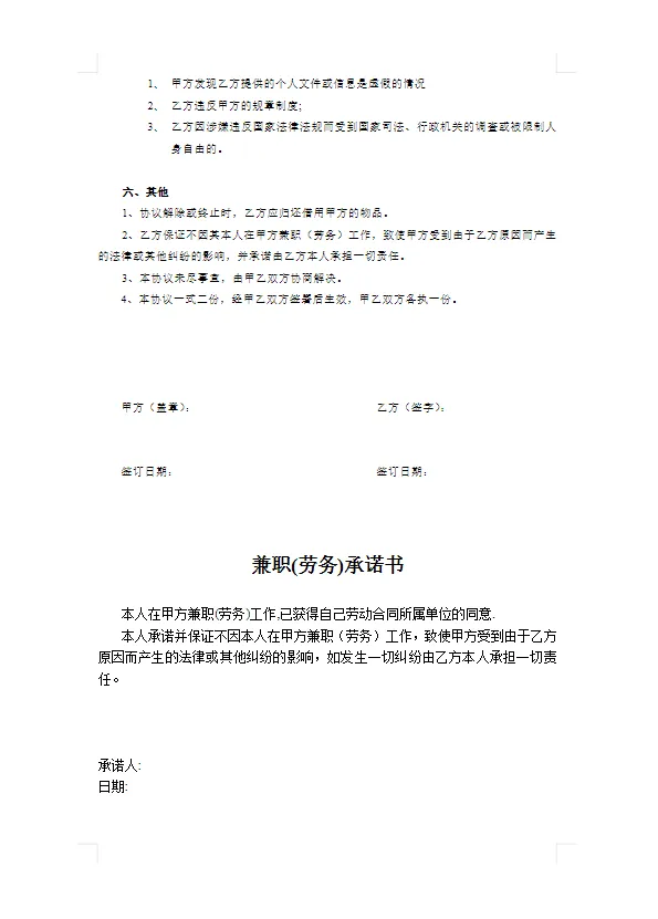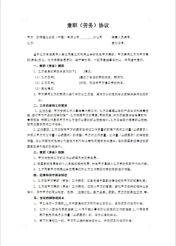 临时兼职劳务合同