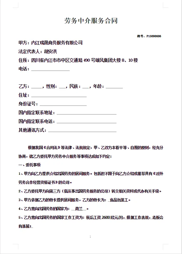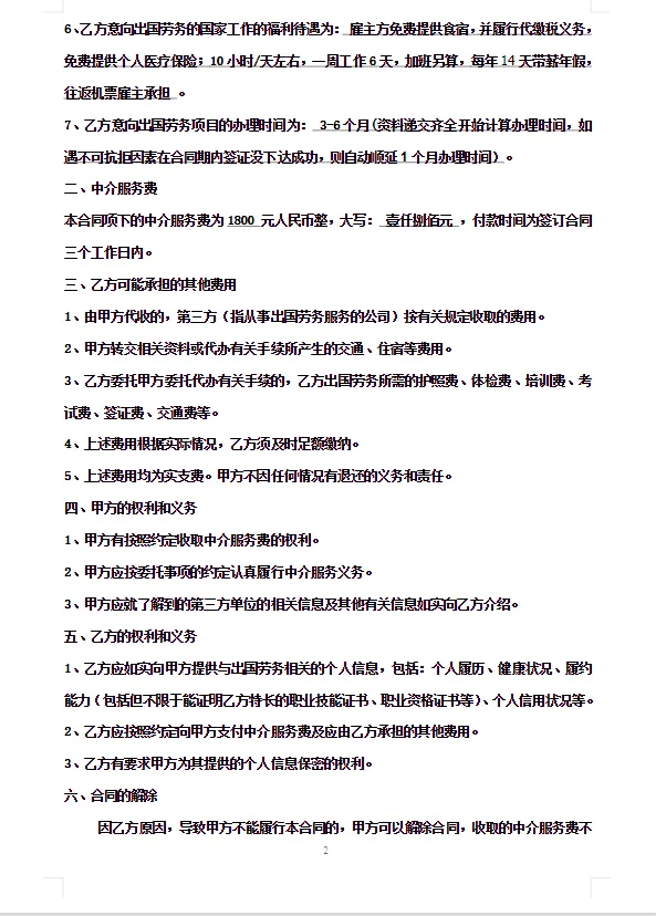 出国国际劳务合同