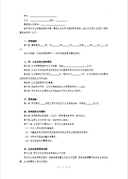 劳务合同通用