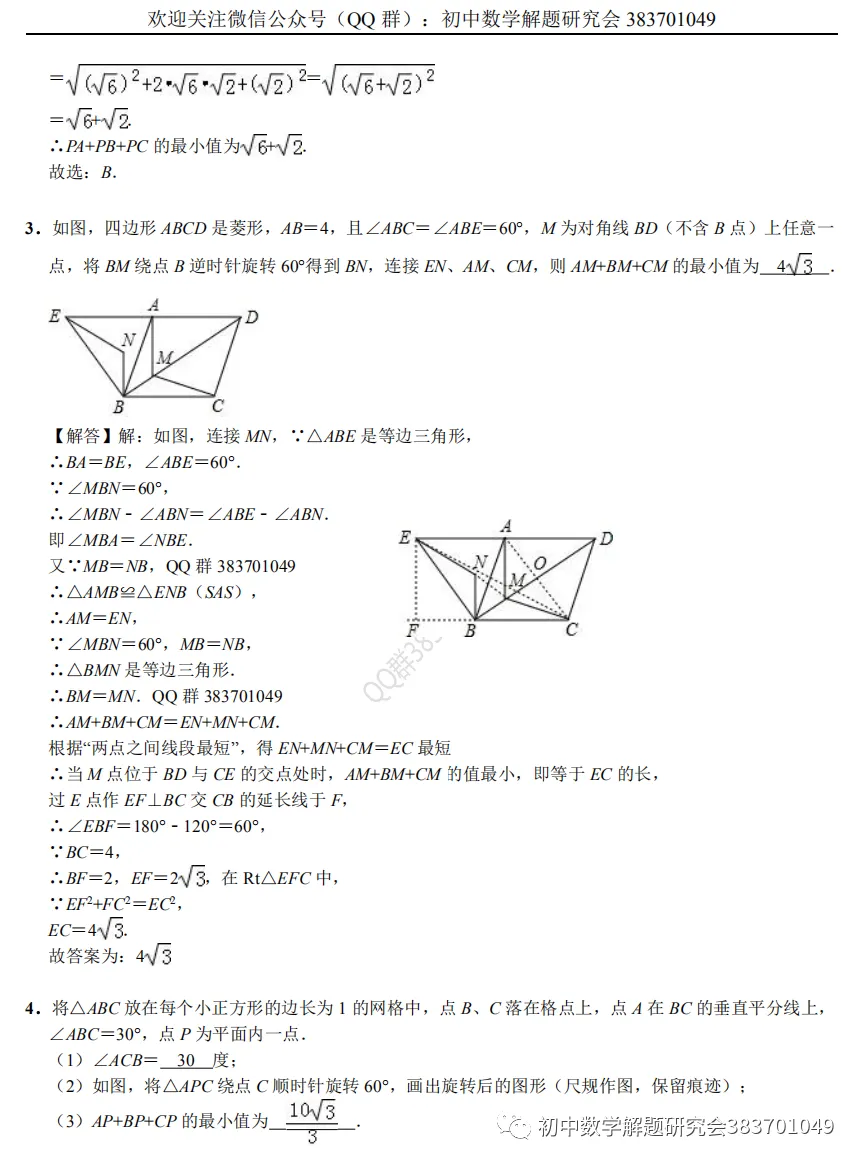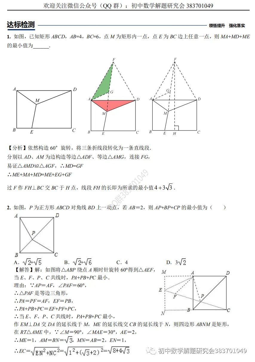 61.费马点最值模型(word分享)