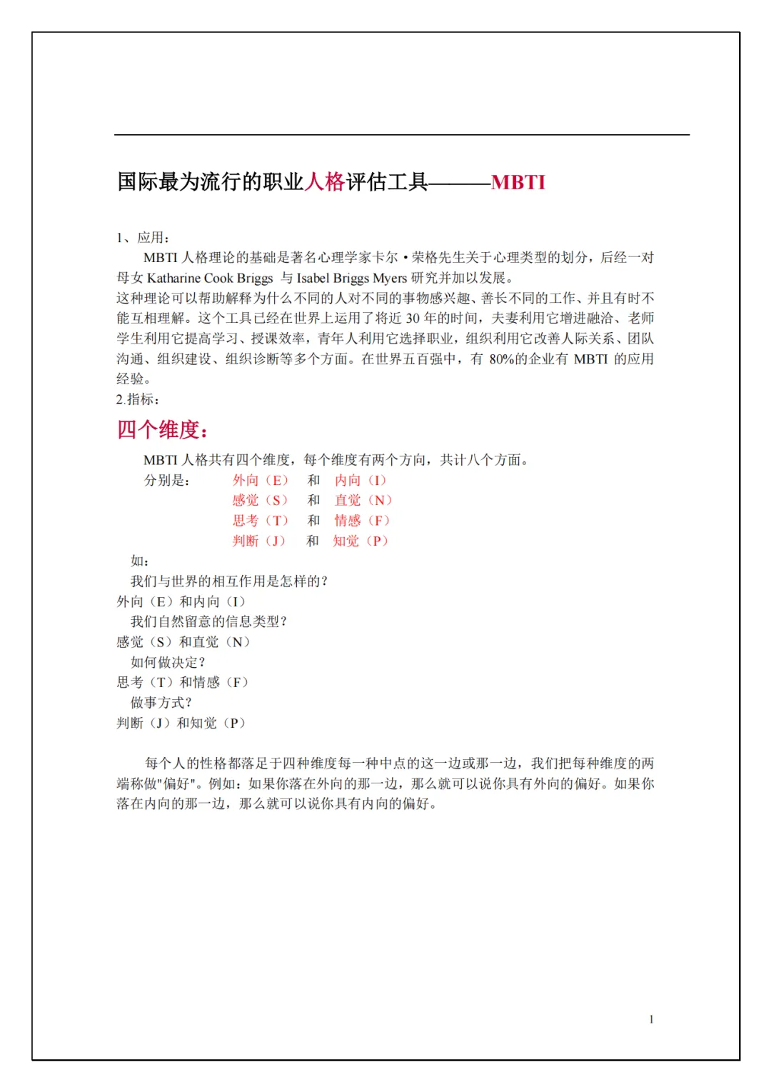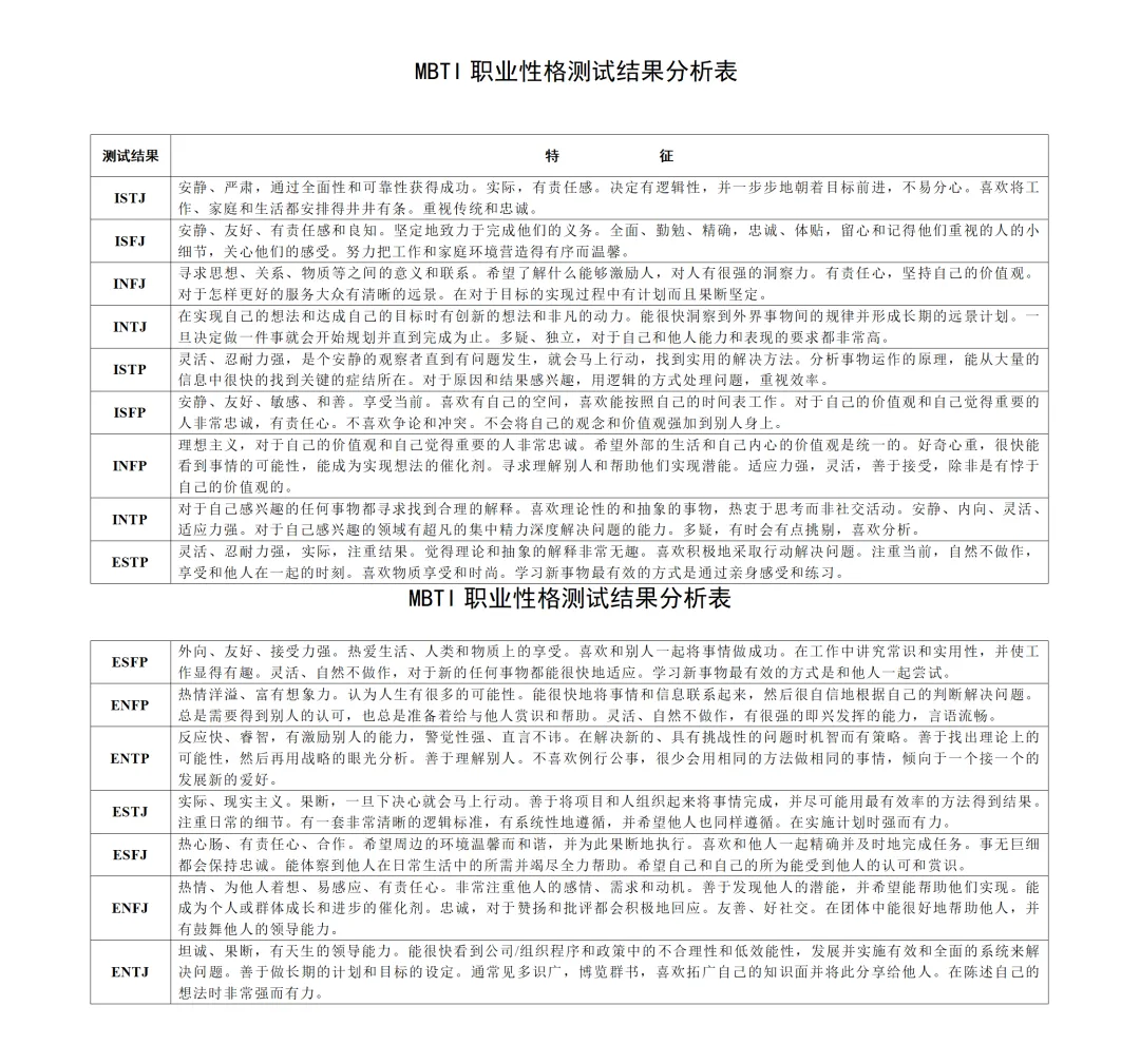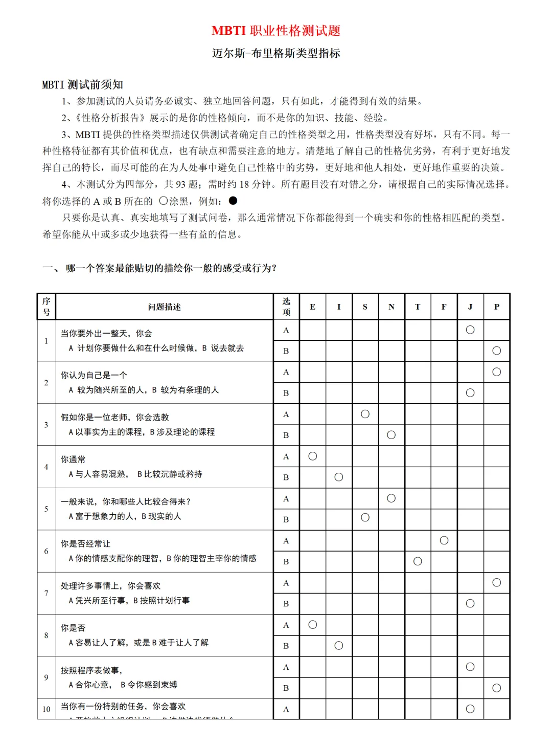 通过这份职业性格测试模板,你可以探索自己在16种人格类型中的归属,了解自己的职业倾向、沟通风格和潜在优势。无论是用于职业规划、团队协作,还是自我成长,MBTI都能为你提供有价值的参考。
