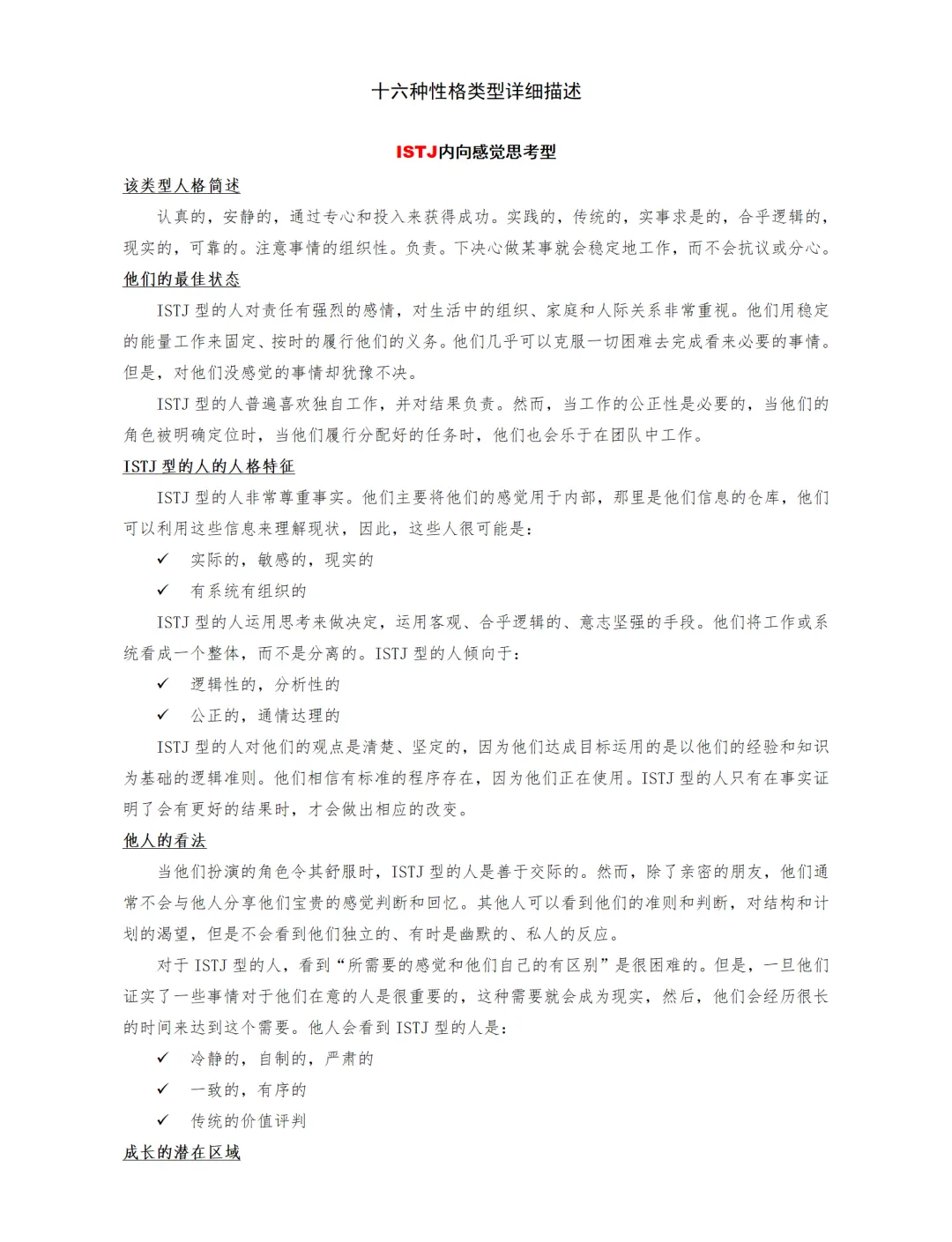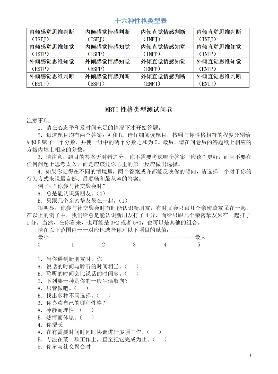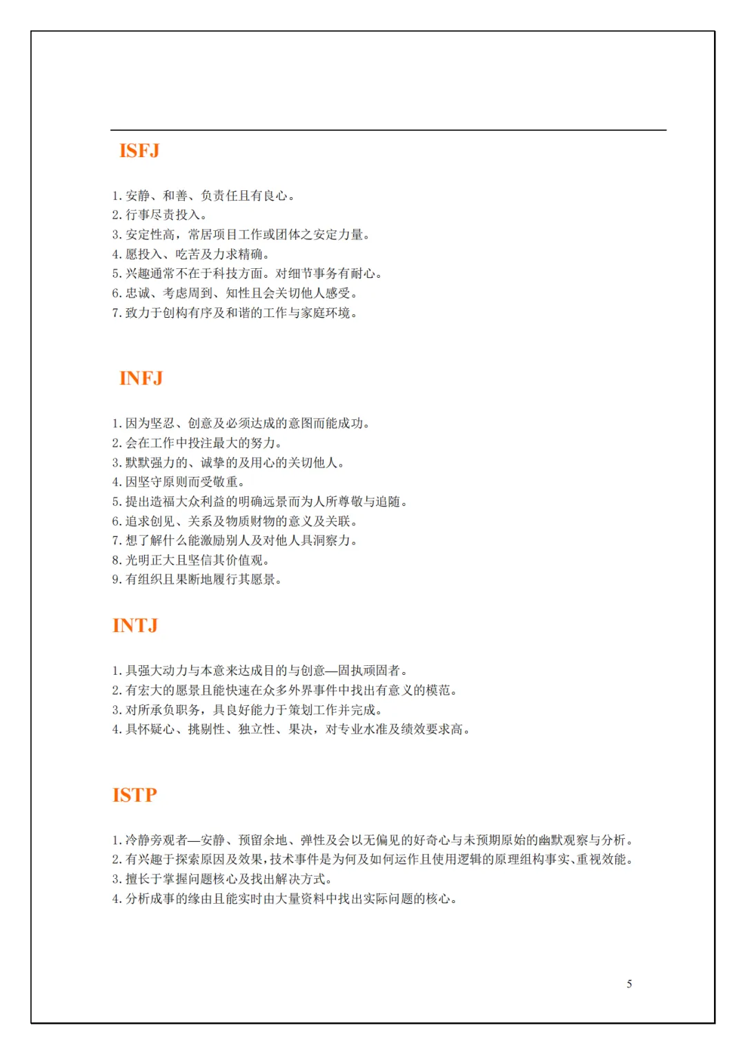 通过这份职业性格测试模板,你可以探索自己在16种人格类型中的归属,了解自己的职业倾向、沟通风格和潜在优势。无论是用于职业规划、团队协作,还是自我成长,MBTI都能为你提供有价值的参考。