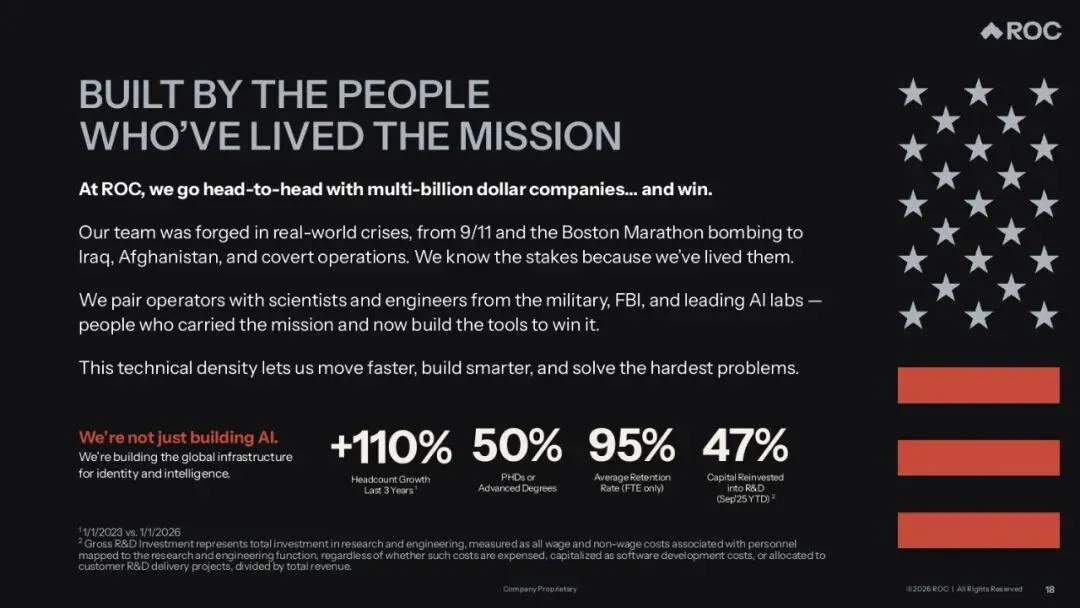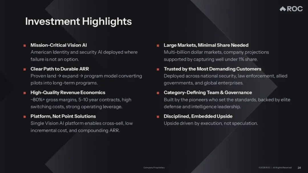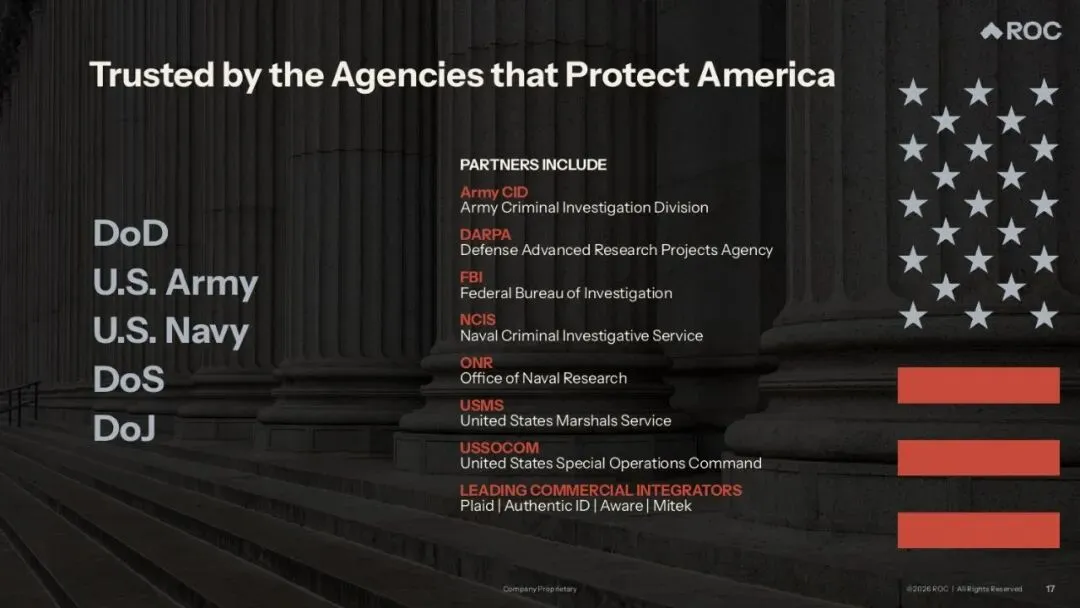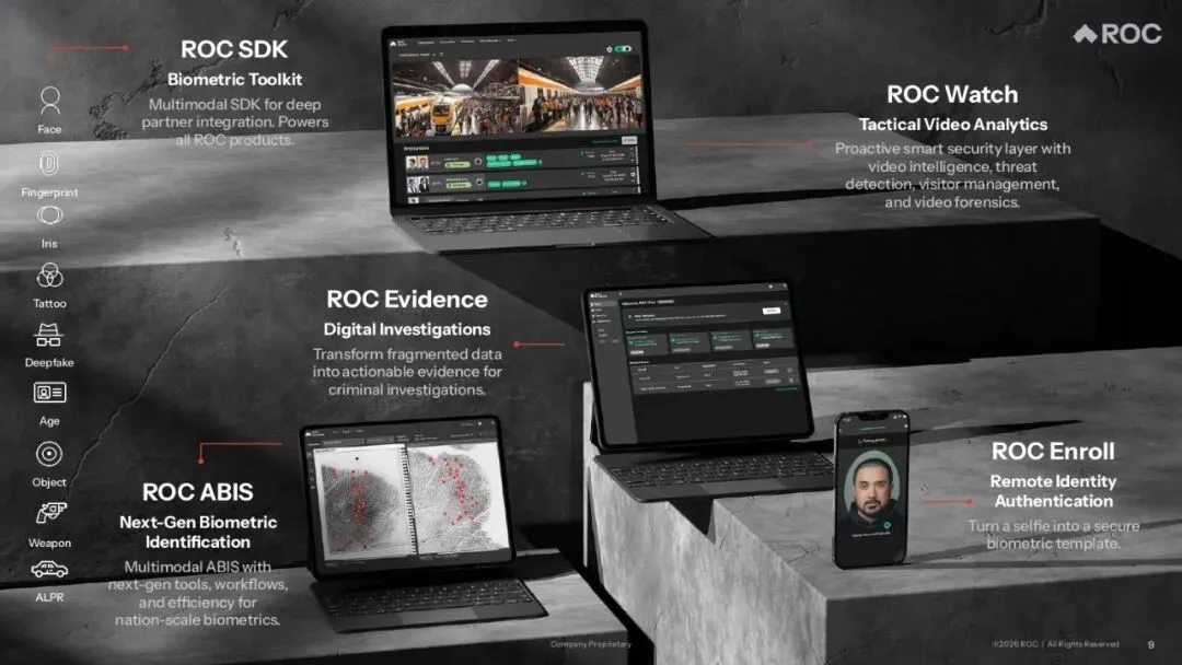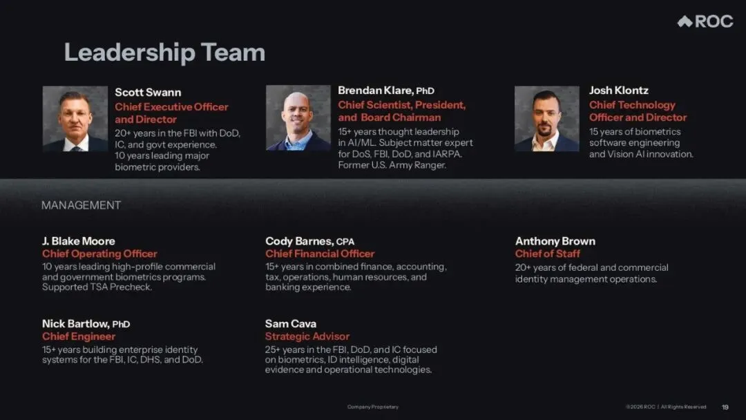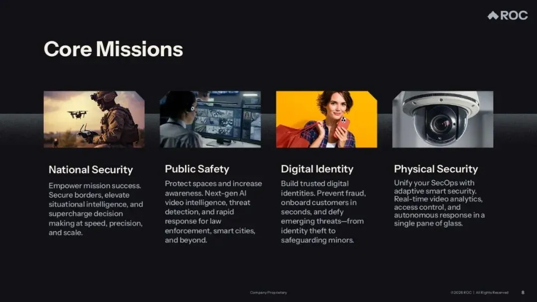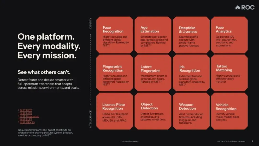 Rank One Computing是一家视觉人工智能(Vision AI)科技公司,该公司开发并销售用于识别、分析、解读物理世界视觉信息的AI解决方案。其业务聚焦于三个核心应用领域:生物特征识别、数字取证、实时视频分析,主要服务于美国联邦机构、国防和国家安全组织、州和地方执法部门等。