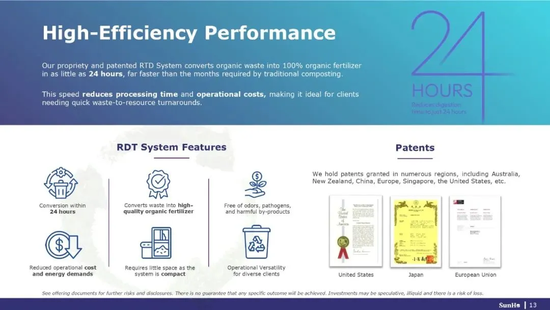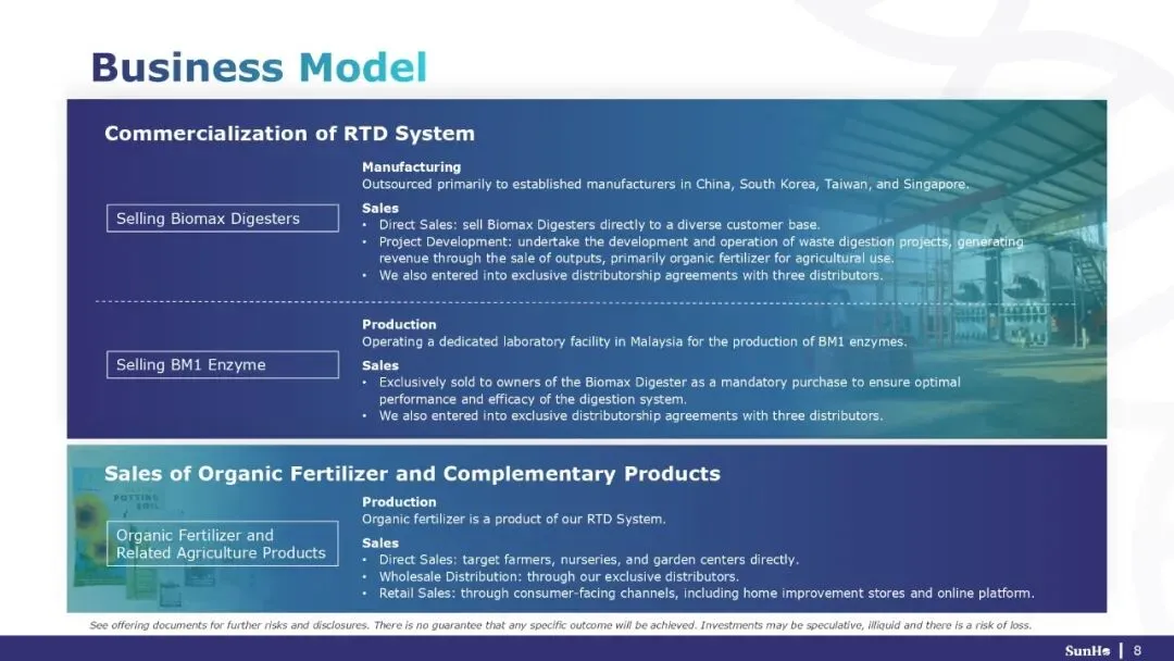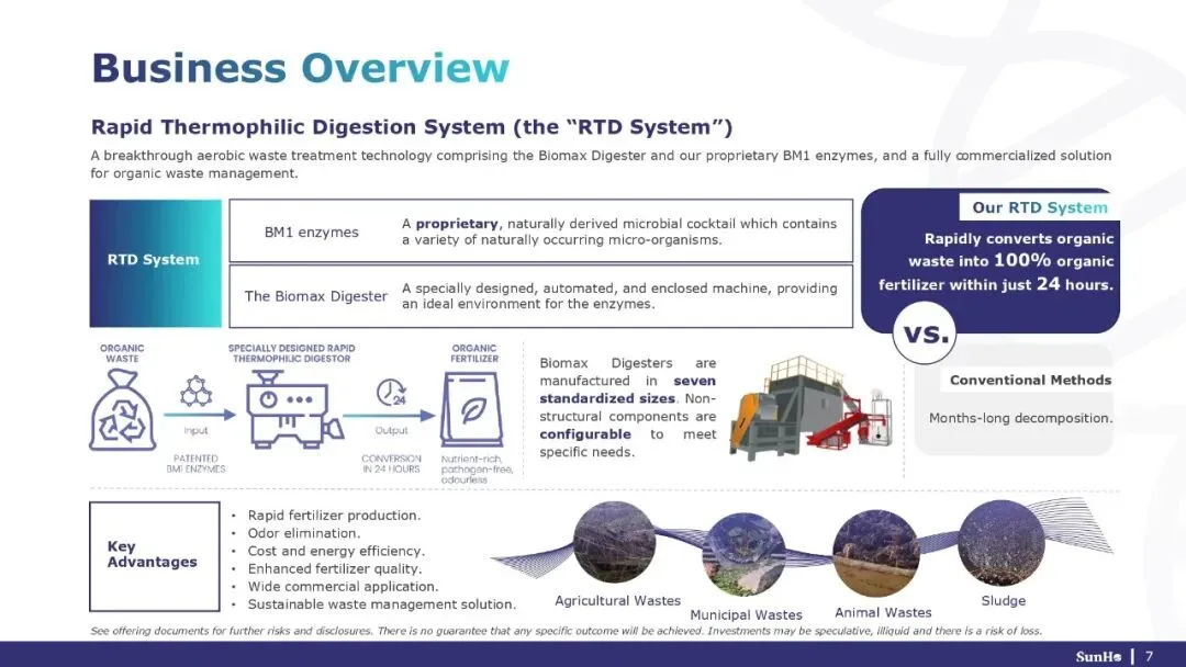 SunHo BioTech Group是一家高科技生物科学公司,通过销售自主研发的设备RTD系统(Rapid Thermophilic Digestion System),将有机废弃物快速转化为高价值的有机肥料,提供可持续的废弃物管理和农业循环解决方案。
