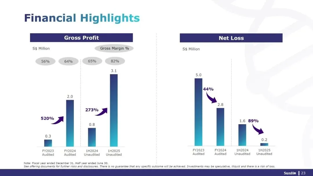 财务方面,2025上半年,SunHo BioTech Group营收381万新元(300万美元),上年同期128万新元,相应的净亏损分别18万新元(14万美元)、161万新元。