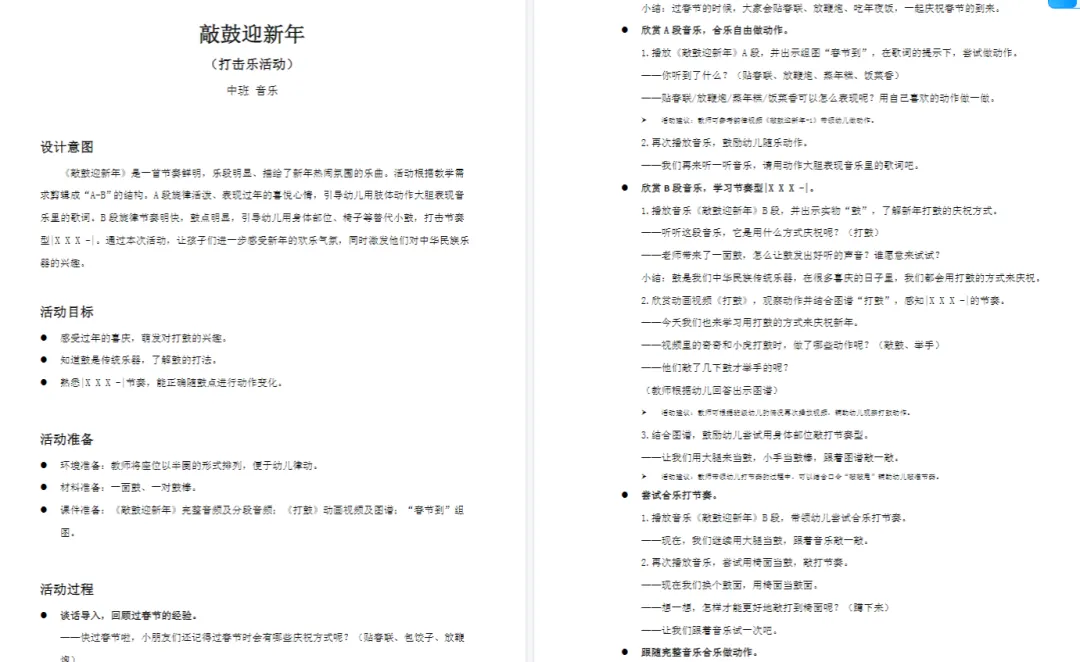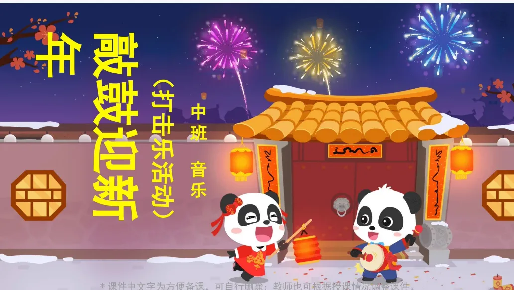 幼儿园中班音乐公开课——《敲鼓迎新年》PPT+教案+动画视频分享